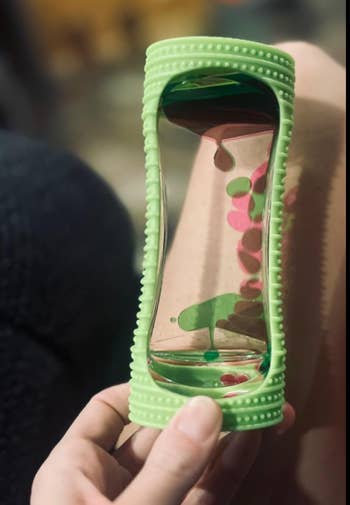 Promising review: "This sensory toy is calming. I just sit in my recliner and run my finger along the bumpy silicone texture that encloses the plastic bubbler. It’s removable also, exposing a surprisingly thin bubbler, which I get joy out of flipping over and over in my hand. I have high anxiety and this toy actually makes me focus and relax. I like the colored liquid inside, it draws my attention, allowing me to calm and focus on something else. This is a good tool to help me ground and recenter myself. I highly recommend." —Tanya Elizabeth