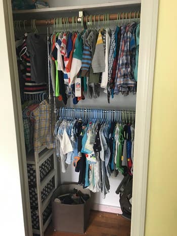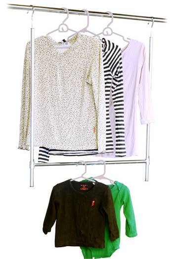 Promising review: "This is the best closet organizer. I originally bought a similar item that doesn't adjust, but this is 100 times better! Not only does it adjust vertically to fit whatever length of clothes, but it also adjusts its width, making it extremely functional no matter which closet you may want to use it in within your house. This makes it possible to switch and organize basically any closet!" —Ohgr8one