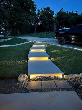 Promising review: "Where I live, it’s so dark and I have no outside electricity off my screened-in deck. I wanted lights for my stairs for safety and found these lights, which work and look great! They come with everything you need to fasten them to the stairs so they don’t fall off as well. I even bought extra and tested them in the event that the ones that are currently outside get damaged for any reason, and they are no longer sold. Definitely recommend for the price, nice and bright, and easy installation. Plus, they last all night long!" —Brooke