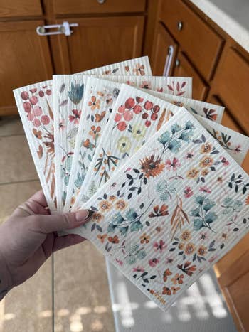Promising review: "I love these! I have used these for years instead of a sponge or a dishrag. They hold up great, mop up crumbs and spills quickly, can be popped in the dishwasher to clean, and bring a bit of color to the sink area in my otherwise neutral kitchen." —Wynnefred