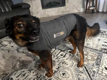 Promising review: "We have two rescue dogs — one is afraid of loud noises and storms and is also very clingy. He constantly wants to be touched, and we can’t always be there to cuddle him, but this has helped him with all of it. We’re still getting him used to it, but I’ve also purchased one for my parents' dog who is terrified of thunder, and it has worked great for years!!" —Gina Andries