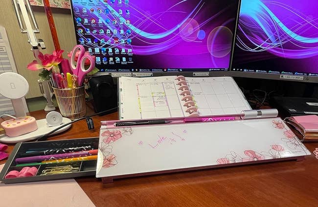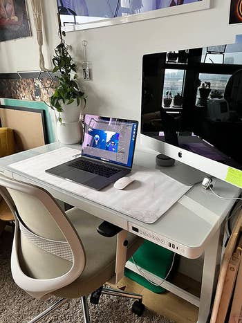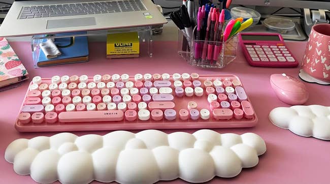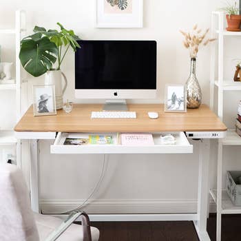 We hope you love our recommendations! While every product is independently chosen by our editors, BuzzFeed and our publishing partners may collect a share of sales or other compensation from the links on this page. You can read more about how our affiliate partnerships work in our Editorial Standards & Ethics Guide. From a cushy cloud wrist rest to a USB-charging monitor riser, these little additions can make your workday more comfortable *and* productive. Whether you're new to working from home or have been a remote worker for years, you may not have invested much into your personal WFH space — after all, you're just there to log on and get your work done. But it's worth it to upgrade your home office situation and make it more comfortable, organized, and even cute, since it is part of your home, and it can even help boost your productivity at work. We're talking desk organization, ergonomic upgrades, and, yes, aesthetic additions that'll give you a jolt of serotonin every time you sit down to work. This stand fits any laptop from 10–15.6 inches and can be easily disassembled into three parts for easy transportation. Promising review: "This has helped my neck pain and workflow. I'm used to working in an office with monitors, and this made a big difference in my work-from-home experience by putting my screen at a comfortable eye level. The material is good quality, feels sturdy, and was simple to assemble. It comes in three pieces and is intuitive to put together without looking at directions. There are pads on the top to keep your laptop from sliding. I'm using it with a 15-inch laptop, and it's a good fit. I did get a wireless keyboard to use with it, which I would recommend. If you were to try to type on your laptop keyboard with this, it would be uncomfortable. I bought it for the ergonomics, but as a bonus, I am liking how it helps me keep my desk organized with the extra space beneath. Great product!" —M Get it from Amazon for $15.29+ (available in nine colors). This whiteboard also comes with a dry-erase marker, accessory channel (to hold the marker), and a storage drawer. Promising review: "Never thought something analog would be SO useful in my daily routine. I work from home and am constantly project managing a number of complex strategic projects. Having pertinent information directly in front of me and top of mind has done incredible things for my productivity. Never would have imagined it would make such a difference. For a nominal investment, I highly recommend it if you have trouble keeping up with things." —Captainflapjax Get it from Amazon for $27.16+ (available in four styles). It has two HDMI ports — be sure to pick up a USB-C hub if you're planning to connect a MacBook. Promising reviews: "If you work from home, you must have this in your life! Super easy to set up, great packaging, great quality, great price. I absolutely LOVE this!" —RR "Just set this monitor up, and so far it’s earned all 5 stars! It was easy to assemble, it’s compatible with my MacBook Pro (with a USB-C adapter), and the picture is great! I just wanted another monitor for when I work from home, so having something available that was affordable like this was perfect for what I needed." —Allison H. Get it from Amazon for $77.97 (also available in four other models, including 27-inch options). Other things to keep in mind: Raising your laptop or monitor up to eye level makes for better ergonomics (i.e. reduced eye and neck strain), PLUS by lifting your screen up, you make more room on your desk for storage underneath the stand. Promising review: "This was just the thing I needed for my desk. Super convenient to have the wireless charger and the USB hub too. Very good for cable management. I really love having a stand that provides additional functionality. It's a clean design, maybe the logo is a bit large and white on black so it's quite noticeable (a shade of gray on black would be nicer), but that's OK. Great stand!" —T Get it from Amazon for $89.99+ (available in two sizes). Promising review: "This is possibly the best bang for your buck, and I cannot recommend this enough. After researching for months for well-priced, minimalist, user-friendly monitor stands, I found this and since using it, I love admiring and using it! I don't write reviews, but I am so blessed to have finally found a product in this category that is not $200+ for a couple cuts of wood like other brands. A built-in shelf and a stand were all I needed for under $100, and this item was perfect for me!" —Tonythat_tiger Get it from Amazon for $99.90 (available in three colors). You can also use this as a regular speaker for music and podcasts and the like, and hook it up using an AUX cord or an included dongle. Conveniently, it also has a button to mute and unmute yourself, so if you're using different video platforms (or your kid is online learning) it's easy to just mute yourself manually if you can't find the button right away on the screen. Promising review: "Once I started using it as my microphone during cam sessions on Zoom and other platforms, coworkers immediately noticed how much clearer it was to hear me. The speaker on this product sounds nice, making it more enjoyable to listen to conference calls. You can also play music through it, so it can quickly become a way to get a nice little stereo wherever you may be in your home or office when paired with your phone. This is a well-thought-out product with a lot of versatility. I can connect to it quickly through a variety of ways, such as Bluetooth, the included auxiliary sound cord, or the included dongle. It also comes with a USB cable, which can charge this device up quickly. I also like that it's all black with a slick design that looks good in my office. It has a slight weight to it, which helps to keep you from accidentally knocking it to the floor, yet is light enough that I can easily throw it in my briefcase." —J Promising review: "It is a