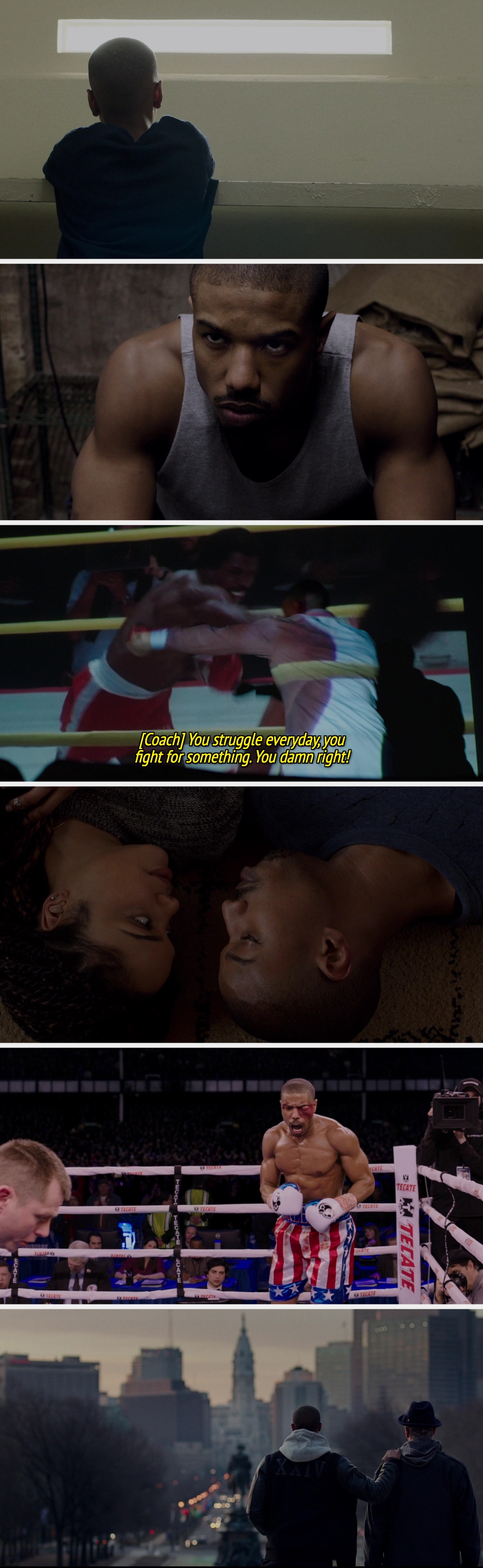 Creed was a hit with critics and audiences, grossing over $173.6 million against a $35 million budget. The film feels just as much of a love letter to Philadelphia as it does to the original Rocky movies, and Coogler's creative voice in it was just as pervasive as it is in his short films and Fruitvale Station — he doesn't shy away from addressing the often limited options Black people have to escape systemic generational poverty ("We're not singing! We're not dancing! We're fighting!") and portrays neighborhoods stereotypically seen as "rough" to be brimming with love, culture, and kinship.