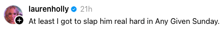 "Lauren Holly has always been like that. I love this woman even more now." If you must know, I based my entire personality on Seasons 2-5 of "Girls," and I'm a huge gamer. Why is it always the mediocre "actors" who become trumpers? Fuck you, Dennis Quaid.Now you're Scott Baio. pic.twitter.com/MVz1J7DSC1 Dennis Quaid said he LOVES Donald Trump. Cool, now America HATES you.pic.twitter.com/Irl16CKrj1 An historic conversation on AF1 between TWO great American Presidents…. pic.twitter.com/Cbv43xnveE "Lauren is my favorite person of the day today," someone else added, while another said, "Now I need to go watch that movie again just for that scene!"