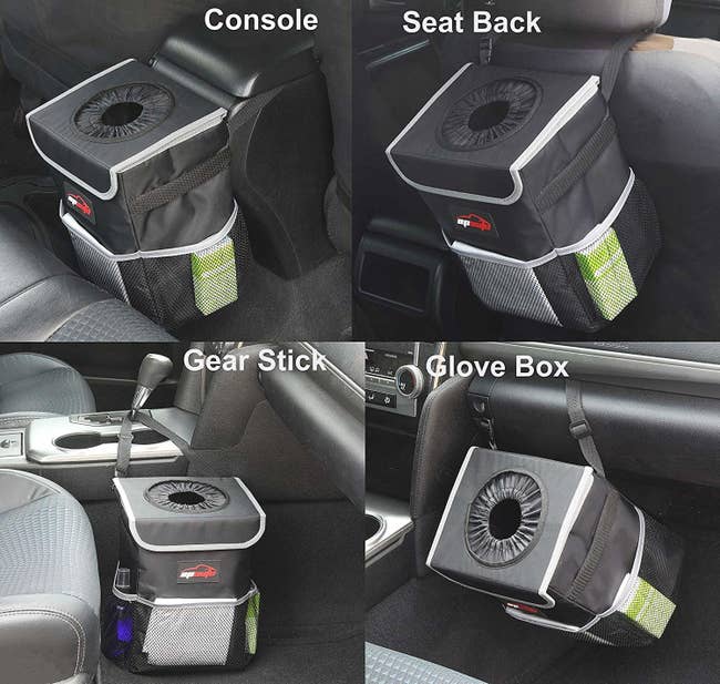 Promising review: "I have an SUV, and it works great! I travel a lot and am always on the road. It is a good size. I have it attached to the center console, and it sits in the back. It gives plenty of legroom for backseat passengers. I use the side pockets to hold my car needs: flashlights, books, etc. I use a regular plastic bag to line the can so I do not have to clean the cloth as much. I like this better than a regular small car trash can because it does not spill or tip over. The top keeps everything in, and there is a small strip of Velcro on the bottom of the bag to keep it in place." —Debra Henegar