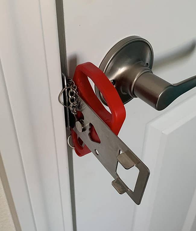 Promising review: "I took my first solo trip and ordered this for extra security. It was super easy to install and didn't require me to leave my hotel door ajar for an extended period of time for installation. My hotel door didn't even move when I tested out the lock. 10/10 recommend for a peace of mind."—Haley Gribble