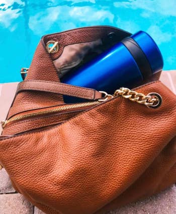 Promising review: "This is my favorite water bottle for traveling. I love how light and compact it is. It's great to carry around, and when it's empty, you can just roll it up and put it in your pocket. The carabiner clip is great for clipping it to your bag or hanging it from whatever you want. I would hook it on the belt clip of my pants when walking around, or just carry it around on my finger. It's much more durable than you'd expect, as well. I was robbed in Brazil and thrown down concrete stairs, and the bottle is still fine. It has been through a LOT and still works great. It definitely does not look new anymore (lots of wrinkles), but it works just as well." —Geoffrey J.