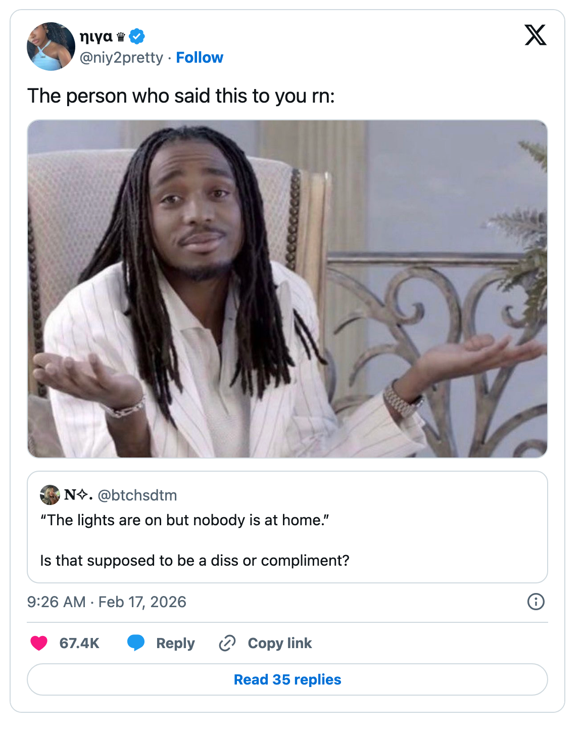 "why do parents bust in your room like they want to catch you cheating on them with another pair of parents?" Hi, Iโm Michaela Bramwell, and I'm a Junior Staff Writer here at BuzzFeed, covering everything trending news, from your latest viral TikTok to the chaos of today's politics. Editor's Note: While we can't endorse what X has become, we can bring you the worthwhile moments that still exist there, curated and free of the surrounding chaos. me sliding out of black history month and into women's history month because my intersection crosses a multi-lane highway... pic.twitter.com/2XFF8W0xun Melanin March tomorrow https://t.co/dg8DrjgdZ8 pic.twitter.com/qRk9sb477K I'm Actually In Physical Pain From Laughing At These 17 Black Twitter Tweets That Completely Made This Week