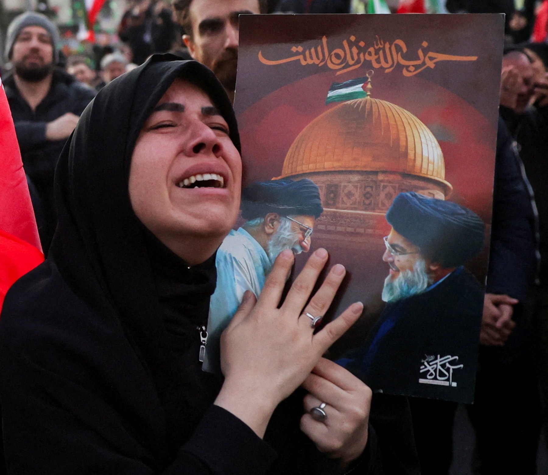 Footage aired by Iranian state media showed supporters mourning at the shrine of Imam Reza in Mashhad, with several people seen crying and collapsing in grief.