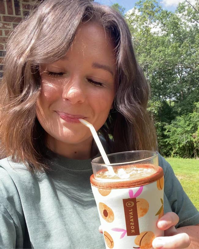 Promising review: "This is a great way to keep your beverage cold while on the go. These are durable and last a long time. The print and quality of the pictures are amazing and detailed. I got the size large, and it fits all travel-sized cups that you can get. There are so many patterns and color varieties for everyone in the household. The value for your money is worth it. I use mine all the time and have several different colors and prints. You can even get ones for each holiday if you like." —Jill J.