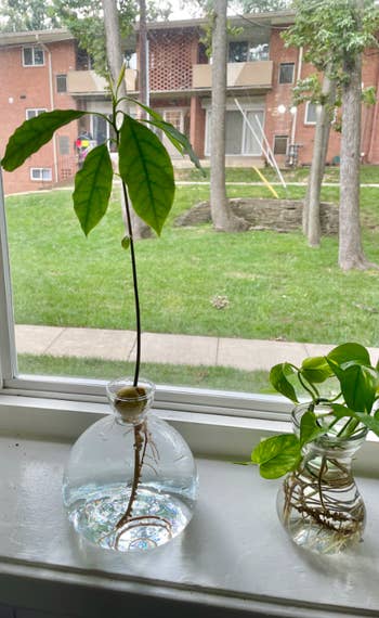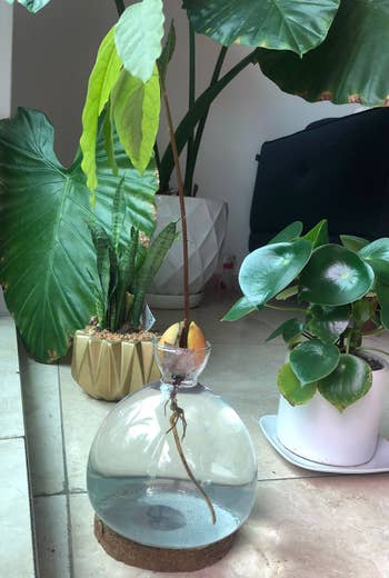 Promising review: "I am absolutely obsessed with this vase. I had been searching a long time for bigger vases with a narrow neck to grow my avocado plant, and this was exactly what I needed! The bottom is nice and wide and allows so much room for root growth. The glass is not real glass; it seems like it’s some type of high-quality plastic. But it still looks very nice!" —Alysia