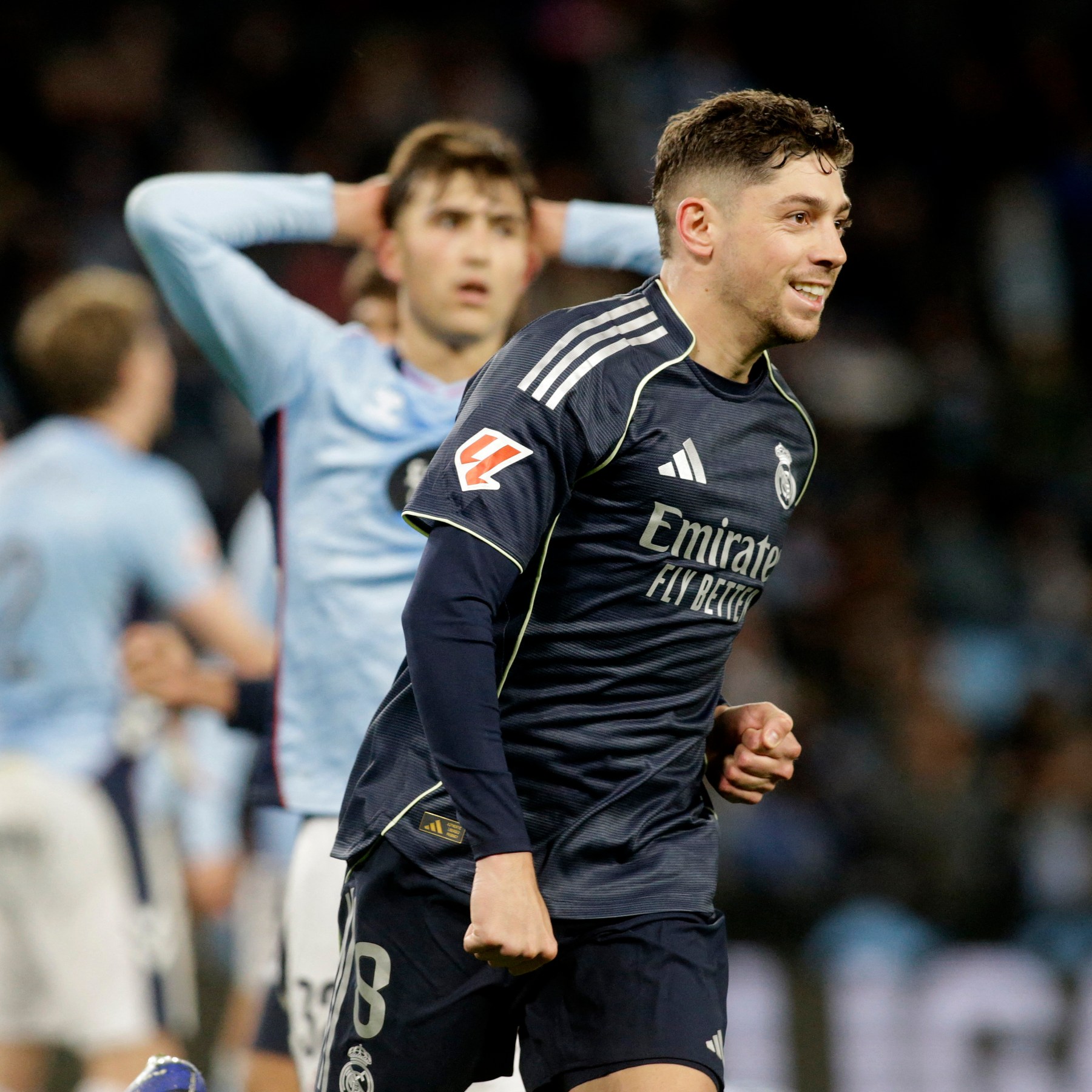 Federico Valverde scores in injury-time as Real Madrid win 2-1 at Celta Vigo to maintain their La Liga title chase.