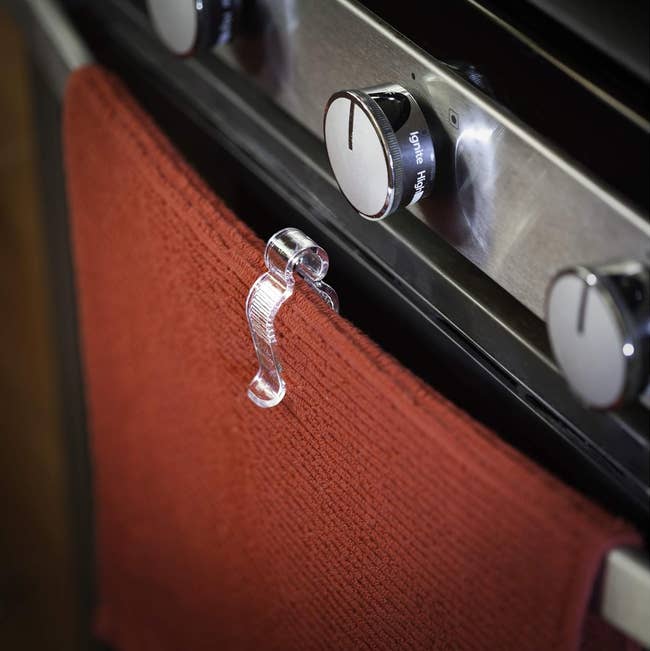 Promising review: "This clip is amazing. No more towels falling on the floor. It was becoming a routine thing since my cat thinks it's fun to pull the kitchen towels off the oven. Not now, bad kitty! Great product...wish I had bought one sooner!" —Joanna