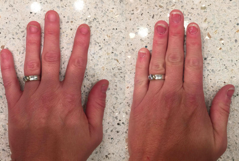 Promising review: "It's a miracle! I am 45 years old and have tried every product over the years — my mom used to put everything imaginable on my fingernails to keep them out of my mouth, my grandma tried to pay me to grow my fingernails out, but still, here I was at 45 with horrible nails. This has been a miracle. I can't describe the taste but will just say that it makes me not want my hands anywhere near my face. Yes, it is difficult to eat finger food with this on — I went to Florida recently and had to have my husband peel my shrimp for me. :-) But, it is a small price to pay to break this habit. Photos are before and two weeks after using this product. I know they aren't long and beautiful yet but they are beautiful to me :-) and the longest they have ever been in my life!" —Laurie C.