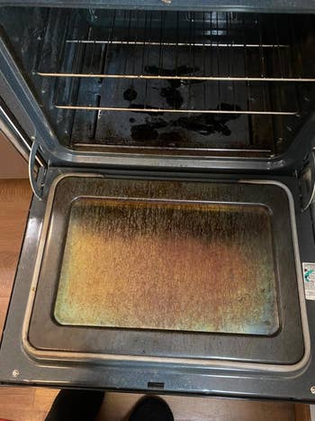 Promising review: "When we leased our house, it very obviously had NEVER been cleaned by the previous tenants. The oven was a big problem and not up to my standards. I didn’t want to use a chemical or anything that would harm us or the pets, and this was PERFECT. Only took about an hour and a half to clean probably 10 years worth of grime from the lil nasties who lived here before us!" —Amazon Customer