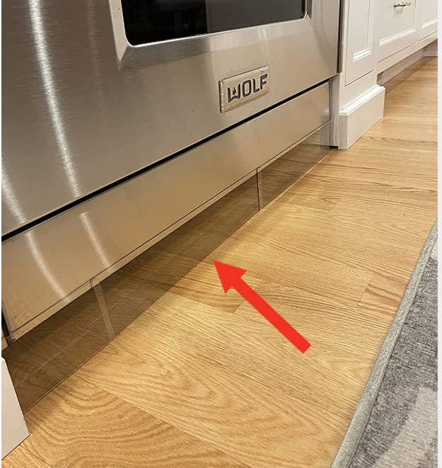 Promising reviews: "WISH I WOULD HAVE FOUND THIS YEARS AGO FOR MY DOGS! I recently bought it because my 11-month-old is constantly throwing stuff and pushing things under the couch. I was able to install this while the baby was climbing all over me, and I haven't had any problems with the adhesive. Also keeps my two small dogs from hiding their bones and toys under the couch! Perfectly invisible. Literally life-changing! I can finally throw away self-made blockers, which were pool noodles that always moved." —Crystal K