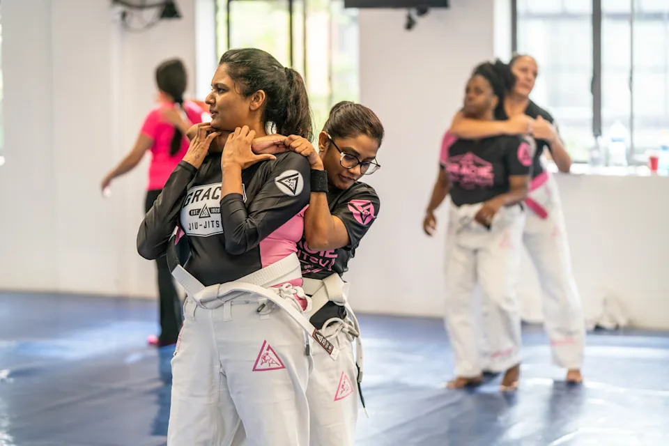 Michael Palin, a jiujitsu gym manager, said not all the women’s partners know they attend training. Some say they are going to the shopping center in front of the gym.