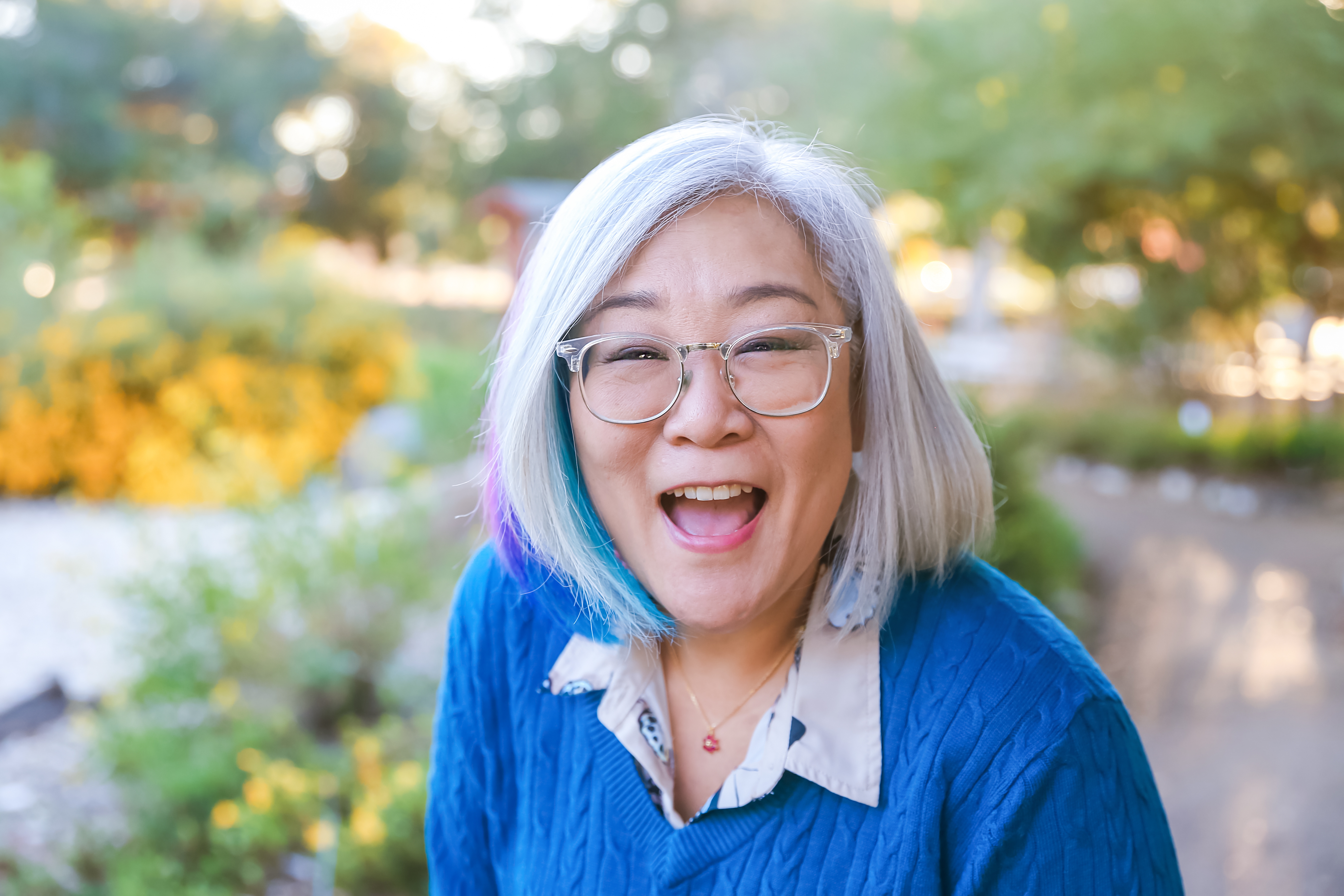 "Her hair was solid white. I’m told she had a solid white streak when she and my granddaddy met, and that it was all solid white by the time she was in her 40s. She was hunched over from osteoporosis, I never knew her without wrinkles, and she was chubby. But she was so pretty. She probably loved me more than anyone else in the world. She is who I think of when I think of aging. She is who I can’t wait to be more like, and getting old is part of that for me. I honor her in accepting my forming grays and wrinkles."