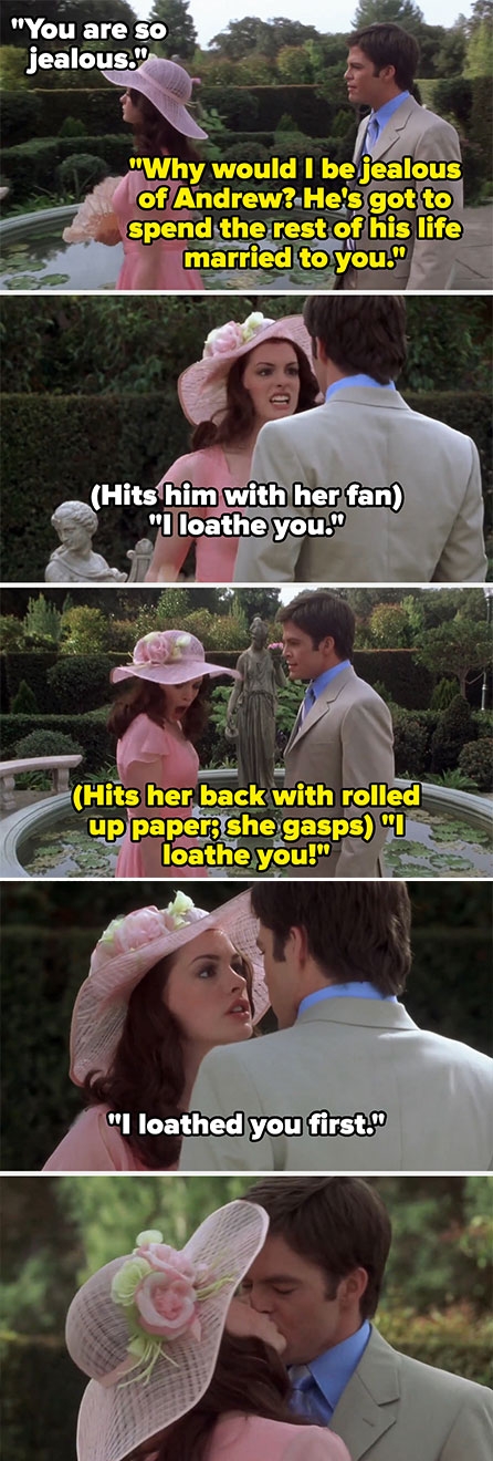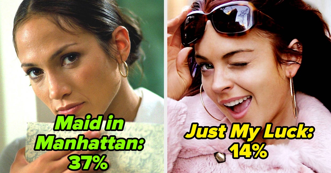 I'm reclaiming the term "chick flick." The men saying that as an insult WISH they were a woman who enjoyed FUN and not pathetic, bitter losers who tear apart every single thing that isn't made specifically for them because they literally have no concept of other people deserving enjoyment. This movie is THE rom-com. It nails every trope — but not in a tired way. Kate Hudson and Matthew McConaughey have amazing chemistry, and having them both conning each other is just hilarious and clever. I refuse to accept this rating. You hear me? I REFUSE. J.Lo really was THAT GIRL in the '90s and 2000s. No one was doing it like she was. Have these critics even SEEN the movie???? Anne Hathaway is perfectly cast, and don't even get me started on THE Julie Andrews. Millions of young girls thought Genovia was a real place because of this movie. The impact!!! Also, the wish fulfillment of getting to be a PRINCESS??? Side note: I was also obsessed with these books, and this movie is NOT a good adaptation at all, but on its own, it's a great movie. This is the movie that started a lifelong love of enemies-to-lovers, and TBH, I've never seen it done better. I don't know why Chris Pine and Anne Hathaway haven't done more movies together, because their chemistry is IMMACULATE. The banter is great. Also, the sleepover scene has stayed with me for YEARS. I wanted to be there so badly. We get Young Emma Stone!!! A man paying for his crimes (even better, that man is — you guess it — Matthew McConaughey! The man was staying booked and busy)!!! I feel like, even in this era of constant remakes, sequels, and movies based on existing IP, we don't make movies based on classic literature anymore. Can we bring that back? I love a good revenge story. I was SHOCKED this was so low, and I'm not even trolling. I feel like women are so often the butt of the joke in high school comedies — seeing women across different cliques team up to take down a terrible man was SO satisfying, and I loved their friendship! Were there some problematic moments, sure, but what 2000s movie didn't have those? This movie holds up overall, IMO. Not the estrogen part, though. I have mixed feelings on this one. Loved parts of this movie, but I wanted her to end up with Patrick Dempsey's character. The other guy was rude. Enemies-to-lovers? Yay. Jackass ex-husband and Reese freaking Witherspoon to lovers? No, thank you! Still, that shouldn't mean it's sub-50%. More wish fulfillment! Hilary Duff is the perfect everygirl, and I love a fairytale retelling. Chad Michael Murray was never hotter, though he kind of sucks as a character. Still, we get some iconic quotes. And don't forget Jennifer Coolidge!!! I always liked this better than The Wedding Singer as far as Drew and Adam movies go...as long as you don't think too deeply about this one. Hey, that's not what it's for! I've never been a huge Adam Sandler fan, but I feel like he's mostly inoffensive/not a giant man-child here. I'd give it at least 50%. This movie is so good, my sister literally played it on a huge projection screen the night before her wedding, and that is so valid of her!!! Ryan Reynolds and Sandra Bullock are so, so funny, AND THIS MOVIE HAS BETTY WHITE. Sometimes I still randomly sing "it takes two to make a thing go right!", Ryan Reynolds-style. Along with How to Lose a Guy in 10 Days, this is THE 2000s rom-com to me. J.Lo has never been better. And Matthew McConaughey is, as we've demonstrated, rom-com royalty. This is the movie where I first fell in love with Rachel McAdams. Also, the queer undertones??? Iconic. This deserves a higher rating for the fashion alone. Next! To be real with y'all...I hate a vignette movie. I did not care for this one. But if you did, I support you. I do love Drew Barrymore! I always used to confuse this with What A Girl Wants, since being the daughter of the president is basically like being the daughter of a lord/earl/whatever her dad was? Great movie; I mean, it's Mandy Moore...who is a princess herself. Tell me this — why do dumb comedy movies featuring men, like Dodgeball, get in the 60s and 70s, but chick flicks like this get in the 30s and 40s? Just think about that. The House Bunny is funny. Anna Faris is hilarious. It's got young Emma Stone!!! Playboy propaganda aside, this movie is fun. Say it with me: the eyes are the nipples of the face. MORE PRINCESS (queen???) WISH FULFILLMENT. And her pink dress might be one of my fave movie gowns EVER. Four percent is wild. I haven't seen it in two decades, but I remember this being a perfectly enjoyable movie!!! Plus, present drama aside, it's good to see Hilary and Haylie Duff together. Looking back, James Marsden's character was a dick and shouldn't have ended up with Katherine Heigl's character. But this movie is fun!!! The karaoke "Bennie and the Jets" scene will go down in rom-com history. I'm not even joking when I say this is in my top ten movies of all time. It's genuinely hilarious. This is Amanda Bynes at her best!!! It's wildly quotable. Genuinely, they need some teenage girls to be critics here. At the middle-aged men writing reviews...this movie wasn't FOR YOU. It was FOR US. And we loved it. Also, the fact that this is based on Twelfth Night...genius. The soundtrack??? Inspired. Okay, I need to stop talking about it, or I'll end up watching it right now. I'm going to be incredibly honest right now and admit I never saw this movie. I know!!! Can I even call myself a rom-com fan? Still, I know people like it. In solidarity with you, I will declare that this movie should have a higher rating. I also love Amy Adams, so there's that. It's cute! It's Isla Fisher! She's funny! There's shopping! It's surprisingly kind of heartfelt! What's not to love? This is the movie that brought us Liam Hemsworth and Miley Cyrus...which eventually brought us "Flowers." Folks, this movie directly led to Miley Cyrus's first Grammy!!!! Let's celebrate it for that reason alone. I am once again aghast. 