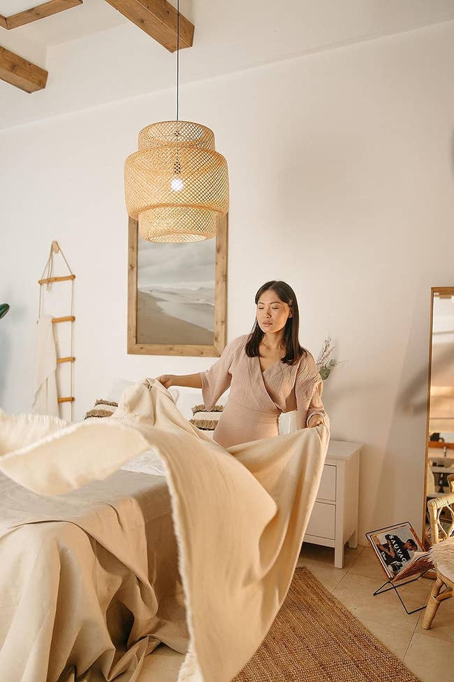 We hope you love our recommendations! While every product is independently chosen by our editors, BuzzFeed and our publishing partners may collect a share of sales or other compensation from the links on this page. You can read more about how our affiliate partnerships work in our Editorial Standards & Ethics Guide. If you don't know where to start when it comes to transforming the aesthetic of your home, this post is for you. Promising review: "This is a fantastic salt lamp. It's made exceptionally well. Very heavy! Medium sized. Dimmer switch and bulb included. The salt piece itself is cut into a perfect square that sits on a dark wooden stand. The salt lamp does not come loose from the stand, it is attached strongly. Adds a lot of light to the room. Would buy again and recommend to anyone looking for something built well, a good size, and aesthetically pleasing." —Zelda Zoink Promising review: "I was surprised at how sturdy and nice this shelf was. Very expensive looking and sturdy when out together. The biggest bonus was how the parts where all labeled and it came with the exact tools you needed to put together. Very happy with my purchase!" —Rhonda Coe Get it from Amazon for $94.99++ (available in three colors). Promising review: "Absolutely stunning! We were looking for art that provided warm wood tones and texture and these hit the nail on the head! They are so unique and everyone that sees them compliments them. They were also extremely well packed for transport. Do not hesitate to purchase!" —KSP Get it from Amazon for $59.74+ (available in two sizes and seven designs). Promising review: "Really pleased with the quality and appearance of this table. It was easy to put together, the top is very thick and sturdy, and the look is quite upscale. Great buy for the price." —Stacey Pennington Get it from Amazon for $119.99+ (clip the coupon on the product page to get it for $109.99+; available in six colors). Promising review: "It is well worth the money, solid, sturdy has water drain holes and a wonderfully marbled appearance. Cleans easily, is exactly as described, and I am thrilled with this buy!!!" —C Tillman Get it from Amazon for $11.99+ (available in three styles and three colors). Promising review: "This is a beautiful bed frame. It’s simple and classic. It’s well made. It was easy and straightforward to assemble. It’s sturdy and heavy. The mattress fit perfectly on it and provides sufficient support. Definitely recommend." —Leah Green Get it from Amazon for $60.82+ available in Twin-California King sizes and five colors). Promising review: "This duvet cover is beautiful. It’s exactly what I was looking for! The beige color is lovely, and the strings make it easy to attach to the comforter. It is easy to clean and fits perfectly over my queen size comforter." —T Get it from Amazon for $37.03+ (available in Twin - California King sizes, a variety of colors, and two styles). Promising review: "Perfect complement to new bathroom. Looks beautiful. Very functional and stylish." —Phil Sheridan Promising review: "Charming and functional – the perfect decorative touch. This wicker scalloped tray is beautifully crafted and adds the perfect touch of texture and charm to any space. The scalloped edges give it a unique, vintage-inspired look, and it’s just the right size for styling candles, coffee table books, vases, or use as a food tray. Lightweight but sturdy, it’s as practical as it is pretty. A lovely piece for any home." —Simply_Dazlyn Get it from Amazon for $24.99+ (available in four sizes and two styles). Promising review: "I really love how these look! These are nice and sturdy metal art pieces. They had all the hardware needed to hang them, and because they have spacers that push them out a little from the wall, it creates a nice 3D effect." —Kimberly R. Get it from Amazon for $44.99+ (available in three sizes and three styles). Promising review: "Loved this so much, I bought another one! Great display piece in the living room for my plants, etc. I feel like it’s made a big impact on the space. Feels sturdy, looks nice, and put together easily. Should I buy two more? :) Seriously a top favorite design purchase ever." —HN Promising review: "This is perhaps my best purchase on Amazon ever. It's gorgeous. It's beautifully made. It's thick, soft, and warm. It comes in a reusable drawstring bag that gives the impression that the purchase is designer — what a great touch! I can't say enough how much I love the color, texture, and richness of this throw. I know I'll have to purchase one for my daughter. I've had this a while and have washed it in the machine on delicate and dried in the dryer, and it still looks just as it did when it arrived. It did not stretch out or shrink, and is still soft. I have to fight my dogs and my daughter over it lol. I LOVE this blanket!" —K. Get it from Amazon for $105.99+ (available in five colors and two sizes). Promising review: "These are the 'wow' in my living room. I'd buy more if I had the space. The gray is so nice and elegant. The gold on the gray is stunning. I love these." —Ebony Michelle Get it from Amazon for $127.99+ (available in seven colors). Great news: Reviewers say that this desk arrives nearly assembled. All you have to do is attach the legs, and you're done! BuzzFeed Shopping editor Elizabeth Lilly loves this: "Perhaps the reason I’ve been so bad at keeping around a box of tissues is because tissues just look...kind of ugly out in the open. But not with this lil’ cover! Now it’s a ~design element~ that I’ll hopefully remember to keep full. For now, it’s filled with a square box of tissues I unearthed from my old apartment’s closet while packing; it's presently neatly housed inside the tissue box cover, providing the 'smoke' for the tiny chimney. The only downside to committing to this box is that I'll have to buy square-shaped tissue boxes only now. But I can live with that. An