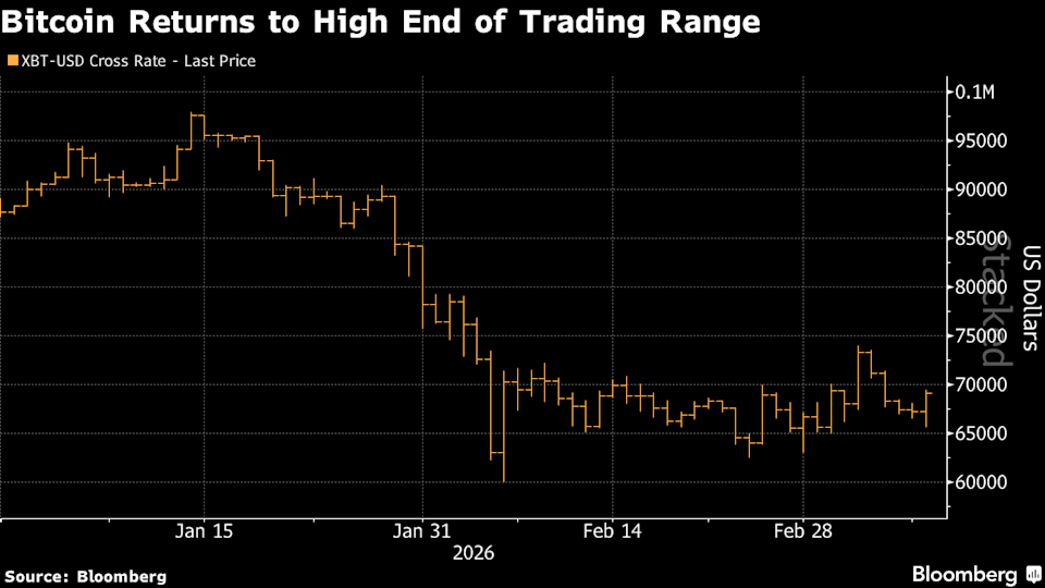 (Bloomberg) -- Bitcoin advanced along with global markets after President Donald Trump signaled the US war on Iran could be ending soon. The original cryptocurrency rose as much as 3.4% to $69,523 in New York, with smaller tokens like Ether and Solana gaining as well. Trump told CBS News Monday in a phone interview that the operation was ahead of schedule as he confronted mounting pressures on the 10th day of the Iran war with oil prices surging past $100. Trump is set to hold a press conference Monday evening. Most Read from Bloomberg Trump Signals Possible End to War, Floats Removing Oil Sanctions Stocks Climb as Trump Hints War Could Be Over Soon: Markets Wrap Greek Oil Tanker Exits Strait of Hormuz With Its Signal Off US Considers Idea of Special Operation to Seize Iran’s Uranium US Tells Tariff Refund Judge It Can’t Comply With Order Markets have been rocked as the war showed no signs of easing, with a standstill of tanker traffic through the vital Strait of Hormuz choking off supplies to the rest of the world. “Bitcoin’s resilient price action is due in part to persistent buying” from investors such as digital asset treasuries, said Joshua Lim, global co-head of markets at FalconX. And also in part to “de-grossing from tradfi market participants closing out short exposure in Bitcoin.” Earlier Monday, Bitcoin was outperforming equities as the spike in oil prices prompted some advocates to tout the digital asset as a potential inflation hedge. “Oil’s rally and the inflation concerns it raises have put Bitcoin’s hedge credentials back in focus,” said Jake Ostrovskis, head of over-the-counter trading at Wintermute. “What’s notable here isn’t just the macro backdrop - it’s that Bitcoin held firm and moved higher at a moment when most traders expected the opposite. That kind of price behavior, holding strength against a risk-off catalyst, is exactly what tends to attract attention from investors reconsidering their inflation play book.” Bitcoin backers have long argued the token can act as a hedge against rising consumer prices because its supply is capped, meaning it can’t be devalued by a government or central bank. But the cryptocurrency has often traded in line with equities, raising questions about that narrative during past bouts of market stress. So far this month, Bitcoin has outperformed gold, which is widely recognized as an inflation hedge. Since the day before strikes, gold has fallen around 3%, while Bitcoin is up more than 5% in the same period. Until last week, the trend in recent months had largely been the opposite, as bullion repeatedly hit record prices while Bitcoin tumbled. Many traders appear to be pessimistic about a sustained crypto advance. US-listed spot Bitcoin exchange-traded funds have seen nearly $6 billion in net outflows since November, according to data compiled by Bloomberg, with flows turning negative again at the end of last week. “Volatility in cryptocurrencies decreased significantly in the second half of the week, unlike in traditional financial markets,” Alex Kuptsikevich, chief market analyst at FxPro, said in a note. “Cryptocurrencies did not emerge as a safe haven; instead, they found only a temporary balance between opposing forces.” --With assistance from Sidhartha Shukla and Suvashree Ghosh. Most Read from Bloomberg Businessweek This Maker of $4 Million Sports Cars Is Weighing an IPO How Data Centers Became a Casualty of War Elon Musk Is Backing ‘JD Vance 2.0.’ Some Republicans Aren’t Sure That’s a Good Thing How Swig Turned Dirty Soda Into a National Obsession Gas Prices Are Rising—and So Are the Iran War Stakes for Trump ©2026 Bloomberg L.P.