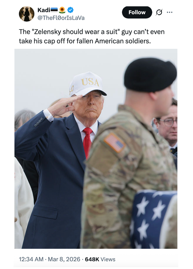 I'm the AAPI Culture Editor here at BuzzFeed, where I cover everything from trending news to pop culture to AAPI issues. Take your hat off, you disgusting little man. https://t.co/9CLllVr2nI Note: The image in the original tweet was replaced here due to photo rights. Wow -- as first spotted by @BadFoxGraphics, Fox & Friends this morning used *old footage of a previous dignified transfer* to mislead their audience about the fact that Trump wore a baseball cap during the one yesterday pic.twitter.com/5Xn3Q6ksx5 According to AP News, Fox released an additional statement: "We regret the error and apologize for the incorrect footage."