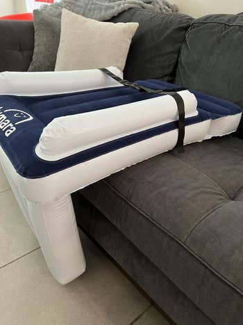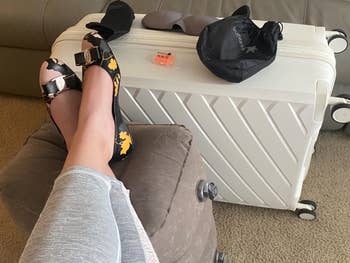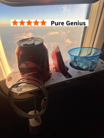 We hope you love our recommendations! While every product is independently chosen by our editors, BuzzFeed and our publishing partners may collect a share of sales or other compensation from the links on this page. You can read more about how our affiliate partnerships work in our Editorial Standards & Ethics Guide. This inflatable foot rest, phone mount, and drink caddy are bringing business-class vibes to your economy seat. This contraption provides 360-degree support thanks to a wraparound design and clips that connect it to your seat's headrest. Promising review: "Just took a 15-hour flight with this travel pillow, and this was the best travel pillow by far. I've used inflatable and memory foam neck pillows before; the major problem is that they don't secure your head and torso, so either your muscles have to hold up your body, or your head and torso will end up swinging around, and both are disruptive to sleep. With this travel pillow, my muscles can relax, and the padded eye mask will hold up my head and torso. One minor downside is that the pillow needs to be mounted on your seat's headrest; if someone bumps your seat, it can be disruptive, but this rarely happens. Its size and weight are also much less than memory foam neck pillows, and I don't have to bring an extra eye mask, so it is very travel-friendly." —Sky Get it from Amazon for $18.99+ (available in nine colors). Check out a TikTok of the nausea relief inhaler in action. PS: Allclair is a small biz! Promising review: "Took this on my first cruise. Anytime that I started to feel woozy, I’d reach for it. I’m sure the required act of deep breathing helped a lot — and breathing in the fragrance of the essential oil is very calming and effective. Worked for me! Wonderful!" —Willy&Lilly Get a pack of two from Amazon for $12.99 (also available in a pack of four). Promising review: "I ordered these earplugs for a long plane trip to another country. The earplugs did the job. They were extremely useful in drowning out most of the noise. I wanted to hear a little for announcements. These did the job. They gave me enough silence to get some sleep but I could hear enough sound to take them out during announcements. If you are looking for earplugs that allow you enough quiet to sleep, these are the earplugs to purchase. They are worth the purchase." —Khitkhat Get it from Amazon for $24.95 (available in four colors). Promising reviews: "Took my toddler on an international 17+ hour trip and I must say this was a great addition for him and me. He had a mini 1st class flight and occasionally I also was able to leverage it to put my feet up." —Nicole Ashley "Must have for long flights. My 1.5-year-old slept well on this inflatable airplane bed on an international flight. It fit nicely on the economy seat and was sturdy yet comfortable. My toddler slept for hours on it so I could get some rest too. I also like that it’s easy to set up and when packed up it is very compact so won’t take up much space in my carry on luggage." —Amy Get it from Amazon for $59.99 (available in two colors and two styles). Read more about compression socks and long flights at Cleveland Clinic. Promising review: "Nice socks! I purchased these for an overseas trip. I like the feel of them. The fabric is nice and soft, not too thick or thin. The socks are a good length for me and I like the color. The socks come with instructions of how to put on / take off. Also, directions on how to 'acclimate' to them by wearing them for shorter periods of time. They are very comfortable/supportive, stay in place while walking around and hug the right places (calves and foot arch). They also came with a little travel pouch, which is helpful for my upcoming travels. I definitely recommend these compression socks." —L. Alexander Get a set from Amazon for $19.99 (available in eight color combos and sizes S–XXL). Promising review: "I love this thing! I always hated putting things in the seat pocket on planes. It was easy for things to get lost in there or sometimes the pockets were pretty tight. This thing was amazing. I was able to get everything out of my bag that I might need during the flight and had easy access to it all. It was so much better than having to pull my bag out constantly to get stuff I needed. It also folds up nicely so it doesn’t take up much space in your bag." —Corey AND it folds down flat when not in use for easy packing. Just note you'll need to be sitting in the window seat and have full access to the window to use this. Promising reviews: "A friend recommended this to me as a vital travel companion, now that I've returned to frequent flying. I initially thought of it as a novelty, but now that I've used it, it's a necessity. It keeps the workspace clear for my laptop, but it also organizes all the little pieces that can become so annoying to keep up with — glasses, earphones, etc. It got my seat mate's immediate attention, as well as a few other folks nearby. I suspect they'll have one soon. Watch for one soon in a window near you!" —Timothy G. Wolfe "This is a very useful product and I take it with me on all my flights. Almost every time, the person next to me asks about it. It's especially useful on long-haul flights and international flights when you want that space the tray table takes up. It's light and thin, so takes up little room in my carry-on. Great accessory overall!" —Trung L. Perilogics is a small business creating hyper-functional tool holsters and bags for carrying your stuff on the go. Promising review: "I bought this nifty gadget about six months ago for a multi-leg, ultra-long-haul trip, and it more than held up the entire duration. I was able to finagle it to fit the tray tables on different planes, and like others, I find the height just nice when clamped onto a stowed tray table. It also works on my roller carry-on handle during layovers. However, I find myself using it a lot outside of travel too! Work-wi