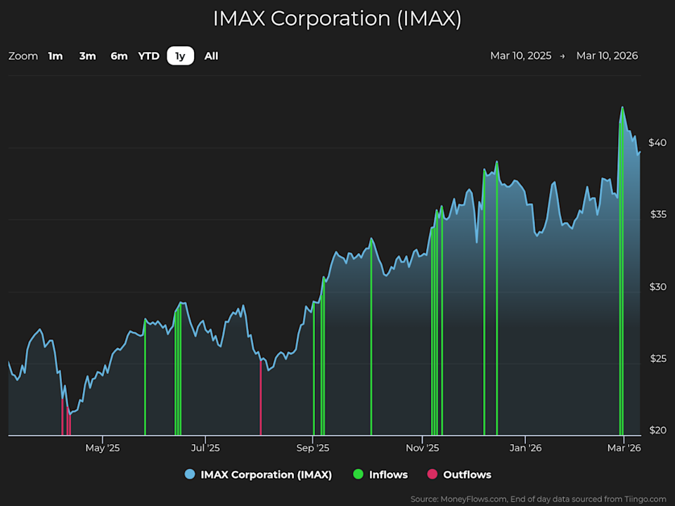 IMAX focuses motion picture technologies and presentations, offering content, technology, and production solutions to global customers. The company’s fourth-quarter fiscal 2025 report showed total revenue of $410 million (a record high), adjusted per-share earnings of $1.45 (also a record), and 166 new system or upgrade agreements in place. The company reports again on April 23. No wonder IMAX shares are up 59.4% in the last year – and they could rise more. MoneyFlows data shows how Big Money investors are again betting heavily on the stock. Institutional volumes reveal plenty. In the last year, IMAX has enjoyed strong investor demand, which we believe to be institutional support. Each green bar signals unusually large volumes in IMAX shares. They reflect our proprietary inflow signal, pushing the stock higher: Plenty of technology names are under accumulation right now. But there’s a powerful fundamental story happening with IMAX. Institutional support and a healthy fundamental backdrop make this company worth investigating. As you can see, IMAX has had strong sales and earnings growth: 3-year sales growth rate (+11.7%) 3-year EPS growth rate (+18.7%) Source: FactSet Also, EPS is estimated to ramp higher this year by +16.2%. Now it makes sense why the stock has been generating Big Money interest. IMAX has a track record of strong financial performance. Marrying great fundamentals with MoneyFlows software has found some big winning stocks over the long term. IMAX has been a top-rated stock at MoneyFlows. That means the stock has unusual buy pressure and growing fundamentals. We have a ranking process that showcases stocks like this on a weekly basis. It’s made the rare Outlier 20 report seven times in a year. The blue bars below show when IMAX was a top pick…Big Money is buying: Tracking unusual volumes reveals the power of money flows. This is a trait that most outlier stocks exhibit…the best of the best. Big Money demand drives stocks upward. The IMAX action isn’t new at all. Big Money buying in the shares is signaling to take notice. Given the historical gains in share price and strong fundamentals, this stock could be worth a spot in a diversified portfolio. Disclosure: the author owns IMAX in personal and managed accounts at the time of publication. If you are a Registered Investment Advisor (RIA) or are a serious investor, take your investing to the next level and follow our free weekly MoneyFlows insights. This article was originally posted on FX Empire Garmin Keeps Attracting Rare Institutional Inflows See How Institutional Inflows Make McKesson Fly Watch as Big Money Boosts Analog Devices See How Institutions Push Vita Coco Shares Higher Strength for the Dollar Ahead of GDP The Clear Reasons for Coherent’s Rise