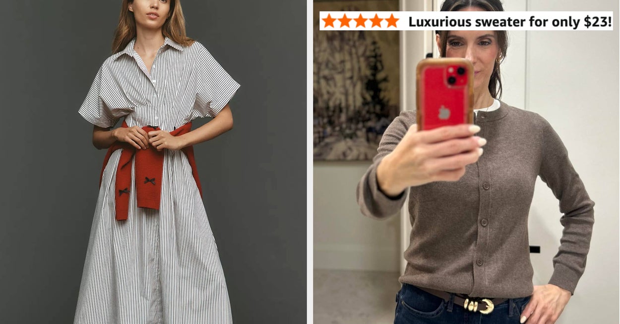We hope you love our recommendations! While every product is independently chosen by our editors, BuzzFeed and our publishing partners may collect a share of sales or other compensation from the links on this page. You can read more about how our affiliate partnerships work in our Editorial Standards & Ethics Guide. The weather is getting warmer and you're getting more inspired to dress cute at the office. If you’re currently staring at your closet feeling like you have absolutely nothing to wear for that 9-to-5, I've got you! These spring-friendly office outfit ideas involve comfortable dress pants, chic blazers, and stretchy pencil skirts — pieces that'll help you feel put-together without the morning wardrobe meltdown. Whether you need a breathable knit set or supportive block heels, these picks are ready for your next big meeting. Unless otherwise specified, all sizes in this post are listed in women’s. Promising review: "I always get compliments on this color! It’s the perfect basic top for an office setting. Not sheer and just not enough stretch." —Matthew B. Get it from Amazon for $19.99 (available in sizes XS–3XL and 28 colors). Promising review: "Absolutely gorgeous and unbelievably soft — the kind of piece you look forward to wearing. The fit is true to size, and the cut makes it versatile enough for the office, weekends, or casual outings. The quality is top-notch, far beyond what I expected at this price point, and the size was perfect right out of the package." —Heather Cornejo Get it from M.M.LaFleur for $150+ (available in sizes XS–XXL and nine colors). Promising review: "These are my new workhorse pants for office wear. Nothing fancy, but they're comfortable, they fit well, they're priced right." —Amazon Customer Get it from Amazon for $32.99+ (available in sizes 16–24, short lengths, and six colors). Promising review: "Super soft and well made. I get compliments every time I wear this shirt! I have rather large breasts, and it fits really well over top of them. Just an FYI for all of my big-busted girlies out there. I hang dry, so it keeps its shape very well after each use. The material is a little thick, so perfect for a cold office setting." —Shelia R. Get it from Amazon for $17.99+ (available in sizes S–XXL and 15 colors). Promising review: "These truly are one of my favorite things to wear to work every day, and I have one of every color. (I think I'm missing like three or four colors, but they are amazing!) The durability is great; they wash up fabulously. Great for the value. Truly a must-have!" —Christy Hawkins Get it from Amazon for $58.99+ (available in sizes XS–XXL, XL Plus–5XL Plus, and 26 colors). Promising review: "Buy the dress!!! If you work in a professional environment or just want to dress up, this dress is for you. It has a slight stretch, unlike other tweed styles, so it will hug all your curves. I got so many compliments on it. It’s very comfortable and very stylish." —Jake/Shelby Arians Get it from Amazon for $39.99 (available in sizes S–XXL and 19 colors/styles). Promising review: "I cannot rave enough about these pants! They are so versatile, the quality is top-notch, amazing comfort, they launder so well, and run true to size. I have multiple pairs and wear them to work in an office. I will definitely be purchasing more. This brand has a large color selection to choose from. I cannot recommend these pants enough!" —Tennessee Shopper Get it from Amazon for $36.99 (available in sizes XXS–3XL and 19 colors). Promising review: "Elevates every work outfit! These are the cutest belts! I get the most wear out of the black, and it makes every pair of trousers look super chic and professional. The adjustable back is good for pants with different waists and is super comfy even after a big lunch! Also, I get compliments all the time, and some people even think it's designer, haha." —Amy S Get them from Amazon for $14.99+ (available in two sizes, various colors, and packs of two). Promising review: "Love this dress. Bought it to wear to work and thought it would be great for the holidays with some tights and heels." —Lauren J. Get it from Meshki for $155 (available in sizes XXS–3XL and three colors). Promising review: "I have this top in the beige and the olive green color, and I love it! I’ve worn it to job interviews, work functions, church, and so many other things. I love it! Super versatile and well made!" —Rebecca Hendrix Get it from Amazon for $27.99+ (available in sizes XS–XL and 12 colors). I recently rented this dress from Nuuly and am strongly considering buying it in a color I really love. It's wonderfully stretchy and comfortable. I went with my true size, though I could've sized down since the material offers decent stretch. (I have a small chest, so YMMV.) Ultimately, I think I prefer having that extra bit of movement and freedom, but if you really want the dress to cinch your waist, then you could opt for a size down. IMO, this dress is great for the office — it's a thicker material that is pretty wrinkle-resistant, so it doesn't look like a crinkled-up napkin when I stand up after a few hours typing away at my desk. It's also totally something I'd wear outside of the office casually with sneakers or for a dressier occasion with sandals or heels, so yes, it's expensive, but you can really get your money's worth. Get it from Anthropologie for $198 (available in sizes XXS–XL standard, XXS–XL petite, and 1X–3X plus). There's also a super-cute mini dress version! Promising review: "I am very satisfied with the shoes, the toes do not stick out of the shoes, they are quite comfortable, they are not high, so they are appropriate for working in the office or standing all day." —Mrs. Retamar Get it from Amazon for $33.24+ (available in sizes 5–11 standard, 7–10 wide, and 11 colors/styles). Promising review: "What can I say? The title said it's all. I absolutely love this skirt. I lov