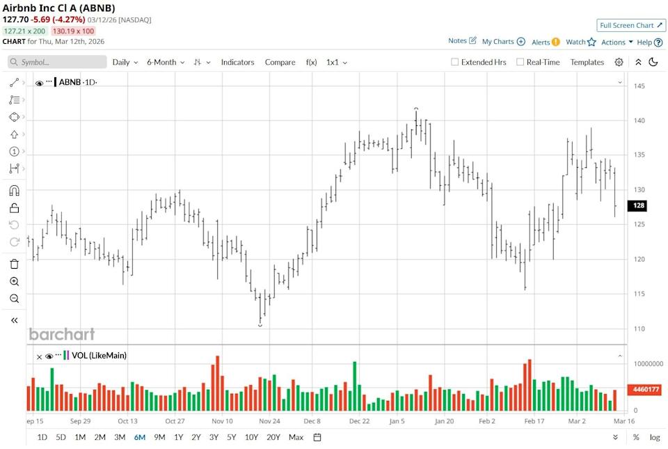 Airbnb (ABNB) stock dropped on Thursday after the vacation rental company announced an unexpected $2.5 billion bond offering. As investors reacted to the announcement of fresh debt, ABNB crashed below all of its key moving averages (MAs), indicating bearish momentum may sustain in the near term. Following today’s decline, Airbnb shares are down about 9% versus their year-to-date high. SoFi Stock Outlook: Can SoFi Technologies Recover After a 30% Drop? Stocks Slump on Iran War and Credit Woes Qualcomm Stock Warning: Why Bank of America Is Betting That QCOM Will Underperform Markets move fast. Keep up by reading our FREE midday Barchart Brief newsletter for exclusive charts, analysis, and headlines. ABNB shares sank on the bond offering announcement primarily because it signals the company isn’t generating enough free cash flow to retire its upcoming $2 billion convertible notes outright. Instead, it must take on new debt, which adds recurring interest expense and raises questions about balance sheet strength. While refinancing avoids shareholder dilution, the move highlights reliance on external financing rather than internal cash generation. This signals slower profitability and tighter margins ahead. The defensive timing of the offering, just days before the convertible maturity, reinforced investor concerns and triggered a selloff. According to Barchart, options traders remain undeterred by the bond offering. The put-to-call ratio on contracts expiring mid-June sits at 0.69x — signaling bullish skew — with the upper price on them indicating potential upside of roughly 14% from here. Analysts also view Project Hawaii and the new “Reserve Now, Pay Later” feature as meaningful tailwinds that could accelerate bookings throughout the upcoming summer travel season. Airbnb shares remain attractive, as CEO Brian Chesky recently guided for double-digit growth in 2026 on the back of AI that he dubbed “best thing that’s ever happened” to his company. Note that ABNB is currently trading at a forward price-to-earnings (P/E) multiple of about 27x, which is historically modest for a high-growth tech leader. Despite the bearish technical setup, Wall Street analysts remain bullish on ABNB stock as well. According to Barchart, the consensus rating on this San Francisco-headquartered short-term rental company is a “Moderate Buy,” with an average price target of about $147 indicating potential upside of more than 15% from here. This article was created with the support of automated content tools from our partners at Sigma.AI. Together, our financial data and AI solutions help us to deliver more informed market headline analysis to readers faster than ever. On the date of publication, Wajeeh Khan did not have (either directly or indirectly) positions in any of the securities mentioned in this article. All information and data in this article is solely for informational purposes. This article was originally published on Barchart.com
