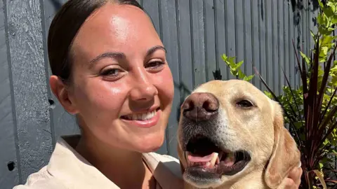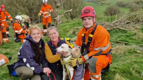 Lurcher-collie cross Storm fell off the cliff ending up on a ledge 20m (66ft) below.