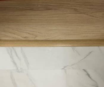 Promising review: "I have a weirdly tall transition to my bathrooms and struggled with getting a normal threshold to stay in the entrance to my other bathroom after laying vinyl tile, so I hesitated on doing the hall bath until I found this product. Problem solved! Looks great and doesn’t budge! And affordable! I will definitely be ordering more for the long gap between my laminate and marble flooring in another area that I have hated for years." —m. white