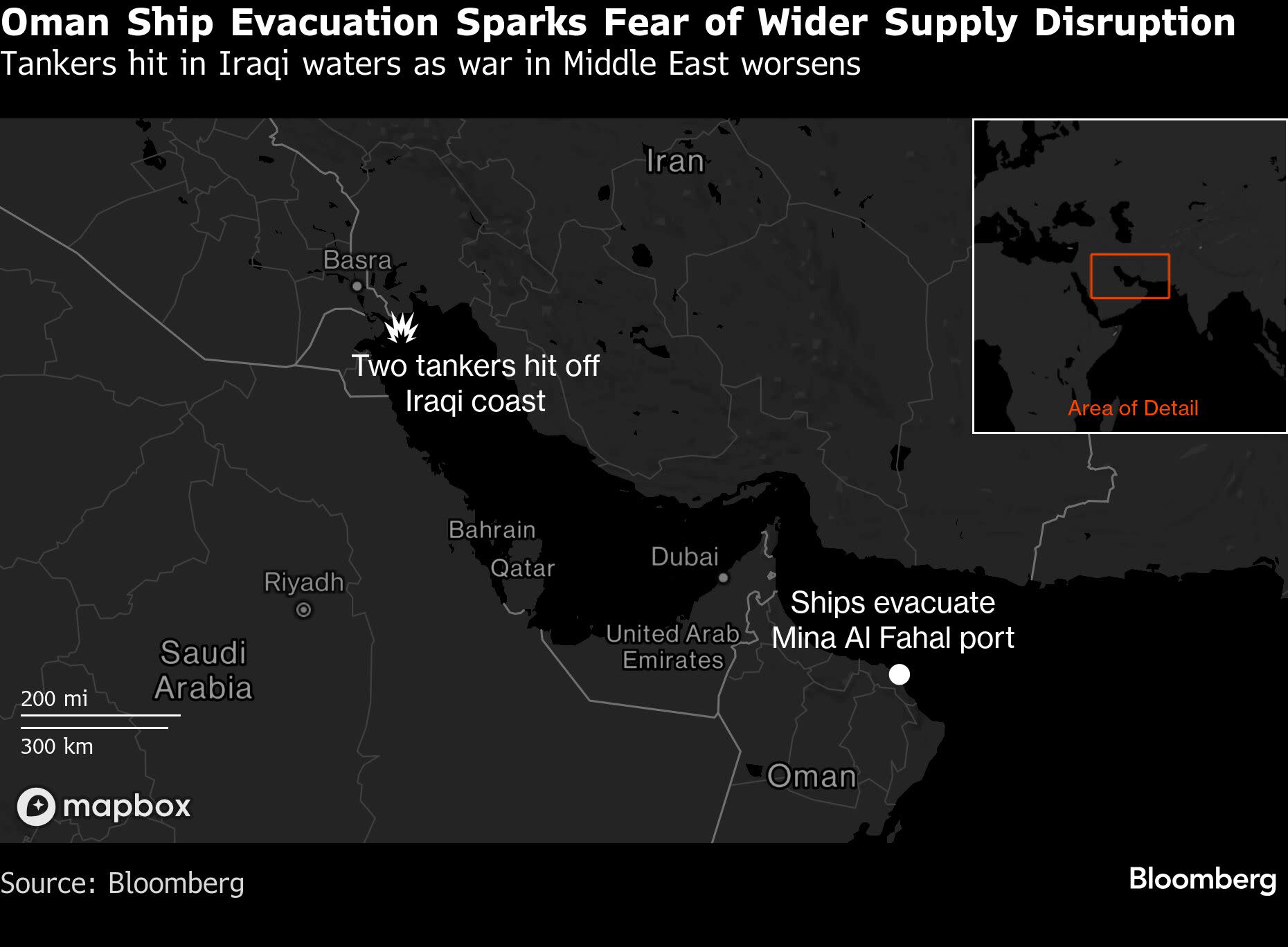 (Bloomberg) -- Iran launched a fresh wave of attacks on shipping in the Persian Gulf, briefly pushing crude back above $100 a barrel and intensifying what the world’s energy watchdog called the biggest oil market disruption in history. Strikes on two vessels off the coast of Iraq prompted the nation’s oil terminals to suspend operations, in an escalation that’s likely to leave global shipowners even less willing to consider crossing the vital Strait of Hormuz. Most Read from Bloomberg Georgia Democrat Leads in Marjorie Taylor Greene’s District Trump Says US to Get New Oil Refinery With Reliance Backing Iran Says Truce Depends on US, Israel Pledging Not to Strike Greek Oil Tanker Exits Strait of Hormuz With Its Signal Off Trump to Invoke Emergency Law for Offshore Oil Producer Sable The longer the conflict drags on, the bigger the impact on energy markets that have already seen fuel prices soar, with some parts of the world experiencing shortages. Saudi Arabia and other Middle Eastern producers have been forced to slash oil output in recent days, and are racing to implement workarounds to export barrels outside of Hormuz. The strait — which handles about of a fifth of the world’s oil flows — has been effectively closed since the war broke out, choking off commodity supplies to the rest of the world. Prices of fuels like diesel and jet fuel are surging as refineries in the region reduce production or shut completely, while fuel makers elsewhere balk at high crude prices. The International Energy Agency warned on Thursday that the conflict will slash global oil supply by 8 million barrels a day this month — the largest-ever disruption to output. Attacks on vessels have intensified in recent days. The UK Maritime Trade Operations said on Thursday that a ship was struck by an unknown projectile just north of Jebel Ali in the United Arab Emirates, while there were three attacks on Wednesday. Global benchmark Brent crude surged as much as 10% on Thursday as the crisis deepened, with even news of a historic 400-million-barrel release of reserves coordinated by the International Energy Agency unable to cool the rally. Traders were still awaiting details of exactly how quickly those barrels can be released. Iraq’s State Organization for Marketing of Oil, or SOMO, said the tankers hit in its territorial waters were the Marshall Islands-flagged Safesea Vishnu and the Malta-flagged Zefyros. The country stopped operations at its oil terminals, according to comments from the director of the General Company for Ports of Iraq, carried by Iraqi News agency. “This event negatively impacts Iraq’s security and economy, and poses a threat to the safety of maritime navigation and oil activities in Iraqi territorial waters,” SOMO said in a statement. Ships were also ordered to leave the Mina Al Fahal oil terminal in Oman as a precautionary measure. The port was reopened after several hours, with operations and loadings now continuing as usual. Still, the evacuation at Mina Al Fahal, which sits outside of the Strait of Hormuz, shows how the conflict is expanding to threaten the few ports from which Middle Eastern oil can still be shipped. Disruptions in Oman raise “fears over broader regional supply,” said Warren Patterson, head of commodities strategy at ING Groep NV. “The market will have to start worrying about more than just Strait of Hormuz oil flows.” The evacuation order for Mina Al Fahal came after drone attacks at other ports in the country on Wednesday. Drones also struck fuel tanks at the country’s Salalah Port, while others were intercepted. Salalah has since suspended operations at its container and general cargo terminals, while other Omani ports like Duqm are working normally, according to a report from Inchcape Shipping Services. “We would have thought the worst-case scenario had already materialized, with the de facto closure of the Strait of Hormuz lasting for almost two weeks,” said Xu Muyu, senior crude oil analyst at data intelligence firm Kpler Ltd. But the naval evacuation in Oman “suggests the situation could deteriorate further,” she said. Around 1 million barrels a day of Omani oil are exported from Mina Al Fahal, according to Kpler. The grade was priced at around $ a barrel on Thursday, well above global benchmark Brent, which is currently near $ a barrel. Disruptions at Oman’s crude export terminals are also significant as the grade is one of two that can still go into setting the Middle East’s Dubai price benchmark, which in turn determines the value of most of the region’s supply. Varieties loading from within the Persian Gulf were excluded from the pricing mechanism by S&P Global Energy last week. S&P Global Energy didn’t respond to a request for comment. The effective closure of Hormuz has led Iraq, Kuwait and Saudi Arabia to cut output. Loadings are continuing from Fujairah, the main export terminal for the UAE that sits outside the strait, but some shipowners are avoiding the port due to the risk of attacks. Saudi Arabia, meanwhile, is sending oil via a pipeline to Yanbu on its Red Sea coast. But those workarounds don’t have the capacity to reach anywhere near the roughly 20 million barrels a day that typically flowed through the strait. The impact of the IEA’s emergency release will also be limited. “While we are set to see a record coordinated release of emergency stockpiles, the pace that these supplies will hit the market only covers a fraction of the supply losses we are seeing,” ING’s Patterson said. --With assistance from Rong Wei Neo, Sherif Tarek and Anthony Di Paola. Most Read from Bloomberg Businessweek China’s Gen Z Day Traders Trust in Chatbots and Move Markets The 12 Days That Changed the Course of War in Iran How a Die-Hard Libertarian Is Negotiating Lower Health-Care Costs This Maker of $4 Million Sports Cars Is Weighing an IPO How Data Centers Became a Casualty of War ©2026 Bloomberg L.P.