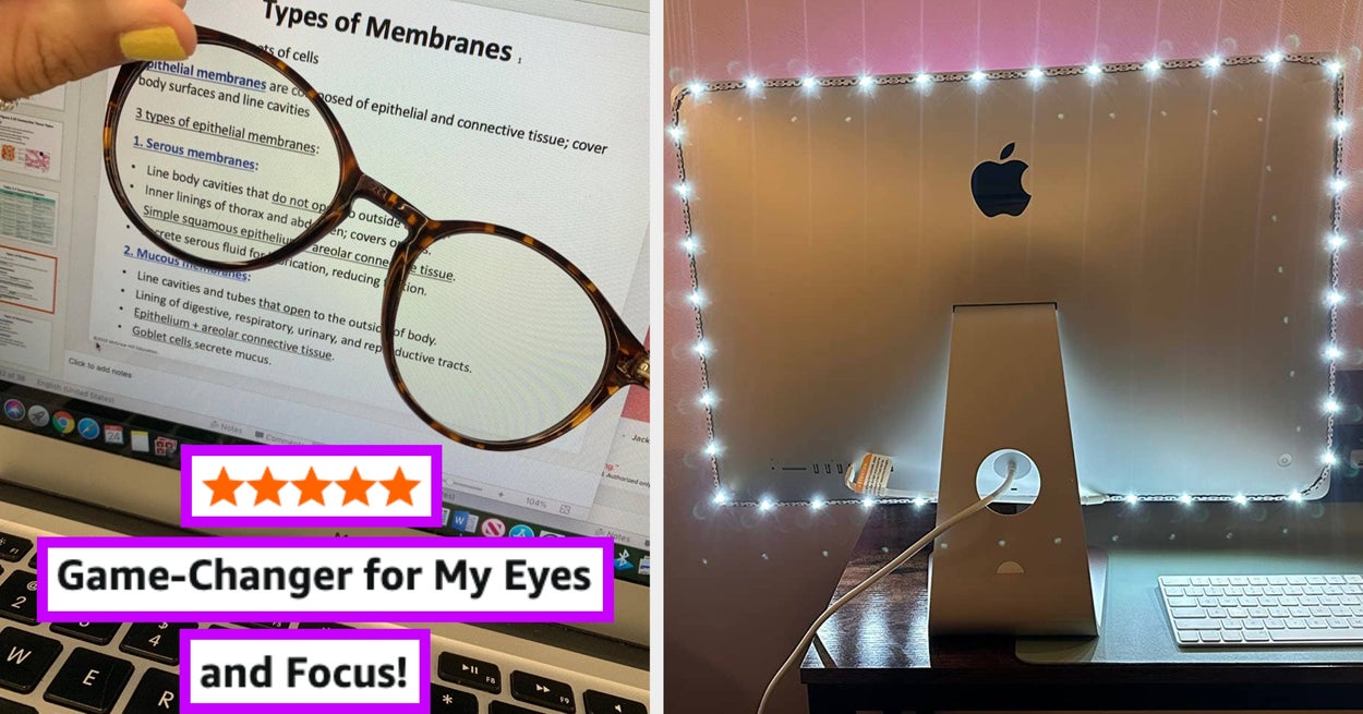 We hope you love our recommendations! While every product is independently chosen by our editors, BuzzFeed and our publishing partners may collect a share of sales or other compensation from the links on this page. You can read more about how our affiliate partnerships work in our Editorial Standards & Ethics Guide. If you're looking to declutter your workspace, make things more comfortable, or increase your productivity... step into my office, I've got 35 things to show you. Tech8 USA is a small biz based in Austin, Texas. Promising review: "Like everyone else, I stumbled upon this product because of a TikTok I saw. Setup was extremely easy and I'm pleased to say that my Teams green light is on all the time now. Workers of the world, unite." —Amazon Customer Get it from Amazon for $19.99+ (available in four styles). Note: Results from wearing blue-light blocking glasses are mostly a placebo effect. According to the Mayo Clinic, while blue-light blocking or filtering products such as blue-light glasses decrease the transmission of ultraviolet light involving wavelengths, there is no significant improvement in vision performance or sleep quality. Read more about it here. Promising review: "I started working full-time from home due to COVID, like everyone else, and I started to get a lot of headaches, my eyes were dry and heavy, and I was having issues with my sleep. My friend pointed out that I was on the computer now all day long when I had barely used computers before. I bought these glasses and have used them for about a week, and they are amazing!!! I feel so much better, and my body feels much better at the end of the day! I only wish they were a little lighter, and they are a little tight behind my ears." —Meghan McCutcheon Get it from Amazon for $14.99+ (available in nine frame colors and three lens colors). It comes in two pieces — one you can prop in front of your keyboard, and the other in front of your mouse. Promising reviews: "I've been working from home due to COVID and began experiencing wrist pain. The soft cushion from both items provided the relief I needed. Great products and price!" —Gaga2015 "Having worked from home for almost a year now without any ergonomic cushion, I finally decided to buy this and so glad I did. They come with stickers that you can place to avoid movement but so far they don't seem necessary...The mouse pad cushion feels perfect! I appreciate not having the ball of my palm resting against a hard surface all day long. This also isn't sliding around on the desk. Feels perfect. These cushions have a great memory foam feel but not so much that they are very sensitive to the touch, they mostly keep their shape." —UAstudentn Get it from Amazon for $13.98+ (available in 20 colors). And the removable cover is machine washable, too! ComfiLife is a small business based in San Diego. They're all about pain relief, comfort, and taking care of your body. Promising reviews: "I've purchased similar items in the past that visually looked like this but were stiff and rigid. This is amazing. Totally eased my back pain from my quarantined-at-home desk job. Highly recommend." —Bellarosa555 "Since I've started working from home (coronavirus quarantine) I really miss my office chair. I saw this reviewed on BuzzFeed and immediately ordered it. Best decision ever. It helps my posture and makes my stiff kitchen chair way more comfortable." —Melissa Schuler Get it from Amazon for $49.99 (available in seven colors). Promising review: "This is great to add some personalization to the desk. I like that it keeps my swearing cups from getting all over my desk. Is easy to write on and the two sides makes it easy to flip back and forth." —ajb1234 Get it from Amazon for $7.99+ (available in two sizes and in seven color combinations). Promising review: "Best purchase I have made in years. Only had it two days, but the first words out of my mouth to my wife were, 'I can work for hours like this.' If you work from home and like to work on the couch, recliner, breakfast nook, patio, etc, and you have your computer in your lap, this is an absolute must-have. Not only does it keep your legs and lap cool, but it also keeps your computer cool and able to process much more efficiently." —Trent Thiel Get it from Amazon for $27.99+ (available in three colors). The earplugs also come with a carrying case and eight different ear tips (XS–L) to ensure the perfect fit. Promising review: "Wore these to a restaurant that is always busy and noisy due to no noise canceling panels in the place. It's all hard surfaces. So it can get loud. With these in, I could hear the silverware clashing, chairs screeching across the floors, and the many conversations around me, but it was SUCH A DIFFERENCE. A 'soft' mute. Clarity. I felt much calmer and could hear the people I was with, more clearly than I expected. Worth every penny." —Victoria Get it from Amazon for $34.95 (available in six colors). A silicone super-soft version is also available for $20.95 (available in four colors). Promising review: "This fits perfectly in my small purse. I love that I can use this for my night time outings to take great selfies but also for work during my meetings. It has warm lights, white light, and a combination of both. You may also change the intensity of each. It really makes you look great." —Araceli Grande BTW, raising your laptop or monitor up to eye level makes for better ergonomics (i.e. reduced eye and neck strain). Read more about how ergonomic workstations can help at Cleveland Clinic. Promising review: "This was recommended in an article about handling working from home during this COVID-19 stay-at-home requirement — since workspaces at home aren't as ergonomic as at work when it comes to eight-hour work days. It is SO worth it! It's incredibly sturdy. The laptop is now placed at a perfect angle. I bought a wireless keyboard which I can use with my laptop when the laptop is in the stan