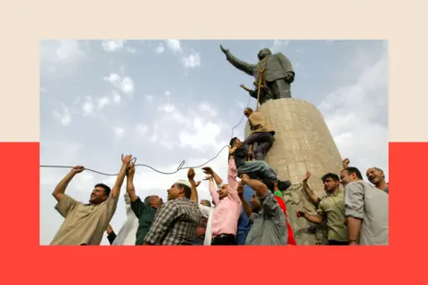 Three weeks on from the statue coming down, America's President, George W Bush, stood aboard a US aircraft carrier, anchored off the Californian coast, behind a banner saying "Mission Accomplished". Except it was anything but.