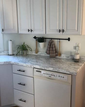 We hope you love our recommendations! While every product is independently chosen by our editors, BuzzFeed and our publishing partners may collect a share of sales or other compensation from the links on this page. You can read more about how our affiliate partnerships work in our Editorial Standards & Ethics Guide. Low-effort upgrades you can totally handle yourself. 🛠️ If your running list of "tiny" fixes is getting longer, but you’d rather not book a pro, these easy home improvement products might be exactly what your place needs. We found beginner-friendly DIY home repair tools reviewers swear by — from peel-and-stick tiles and grout pens to drain cleaners and renter-friendly window shades. They’re the kind of low-effort home upgrades that can help you tackle annoying little problems in just a few hours — promise. Promising review: "I love WD-40 products and use them for everything. I spray on shovels to keep dirt or snow from sticking, spray around windows and thresholds to deter bugs, clean Sharpies off wood and walls, and, of course, stop squeaky doors. These small, direct-point application pens are great. Keep one in the glove box, my kitchen 'junk' drawer, and the house toolbox." —BBP623 Get a three-pack from Amazon for $12.49. Snug Plugs is a small business that specializes in home improvement products. Promising review: "These are SUCH a game-changer. We rent, so I can't do much about the loose outlets around the house. These have made several outlets usable again!" —Minerva G. Get a pack of 10 from Amazon for $10.99. Promising review: "This actually works! It works like magic! I was excited, I couldn’t wait five minutes, as suggested, after pouring the liquid. But it still worked like a charm. It’s so therapeutic to see the grout fall apart. 😊" —Srivi Get it from Amazon for $19.95+ (available in two sizes and with or without a brush). Promising review: "I moved to a rental unit where the grout in the kitchen had clearly been mopped with dirty water and left to dry enough times that the beige grout was mostly black and gross. I tried to clean the grout, but my best efforts still left the grout splotchy, and it was hard work. When I tried the grout pen, the difference was absolutely amazing — it looks like new grout, and it takes only one or two coats to restore and recolor the grout completely. I'm going to order a couple more pens and do as much of the floor as I can. What a difference! It now looks like a new floor. Love it." —Minnmac Get it from Amazon for $8.99+ (available with narrow or wide tip). Promising review: "So Pinteresting! I used this adhesive film to turn two cheap Ikea tables into less-cheap-looking Ikea tables because I'm not made of money, but I would like others to believe I am. Super simple to use, and a ton of it for the price. I was really pleased overall. The pattern actually looks like marble, not a weird pixel-y repetitive pattern, so that's great as well. Also, it was delivered the same day, which was miraculous as my DIY inspiration tends to fade approximately 48 hours after I discover a project I want to do." —Spencer House Promising review: "Since the installation of the new toilet in my apartment, the connection between the base of the toilet and the floor tile looked so unfinished. Finding this caulking tape was a godsend. It made such a difference and was easy to cut and install. The only tool needed is a good pair of scissors, plus make sure the designated area is cleaned." —Melanie Nowlin Get it from Amazon for $9.99+ (available in four options). Promising review: "It fits great on the blinds that are in my apartment. One less thing to drill and then fix when I move. It holds up great to the blackout curtains. Easy to install and use. Definitely recommend if you need curtains in a rental and can’t or don’t want to drill holes." —Martha Get a set of two from Amazon for $18.95 (also available in brown). Promising review: "Quality product. Exactly as described and so very easy to install. Sturdy construction. Fits snugly and does not move when opening from the bottom or top. Perfect privacy for the large primary bathroom window. Perfect room darkening. Opens from the top and bottom easily. I plan to buy several more." —Christine O'brien Get them from Amazon for $41.99+ (available in dozens of sizes and 12 colors). The full kit — from small biz Giani Inc. — comes with two cans of cabinet paint, a roller arm, two roller covers, and an angled paint brush; it requires no stripping, priming, or top coat or sealer, and there's no need to remove your cabinet doors. Promising review: "Amazing! Amazing! Amazing. It took more than one coat, though. My cabinets were bare wood, and I still needed a couple of coats. My kitchen is medium-sized, not too big, and it only took one can. This took my kitchen from looking like a cheap rental apartment kitchen to a high-quality kitchen with just this paint and new knobs. The paint is perfect for cabinets — it's not too thick, so you still see the wood grains. It comes with EVERYTHING you need. I didn't have to buy a thing. The project is super easy, the paint dries fast, and I did it at first by removing the cabinets, but it wasn't necessary at all. I would recommend EVERYONE to purchase this and give your cabinets a chance before making a big investment in new cabinets. Wood is wood, and it can be refinished." —Brandon Moronta Get it from Amazon for $36.95+ (available in 11 colors and two styles). Promising review: "These touch-up pens are super! And the ladies at SlobProof are so sweet and helpful if you need something! I love using these to touch up dings/scrapes here and there that come with living life in a rental. My recommendation is to twist the bottom slowly — a little twist goes a long way!" —New Mom Get a two-pack from Amazon for $14.99 (also available in a five-pack). The mold-resistant tiles are sold in 11.43 x 9-inch sheets, and each pack comes with