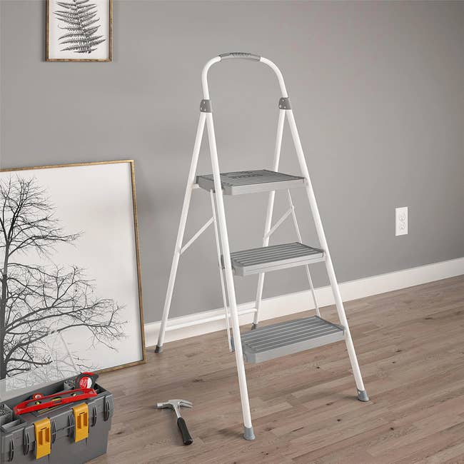 Promising review: “I can finally reach the tops of my cabinets! Loved the reach. I had initially bought the two-step ladder, which is wonderful and works in most of the places I need, but in the kitchen with my tall cabinets, I still wasn't able to reach all the way to the top shelf. Now I can! Wish I hadn't waited a year to buy this three-step ladder! Very sturdy and easy to store out of sight.” —Dana