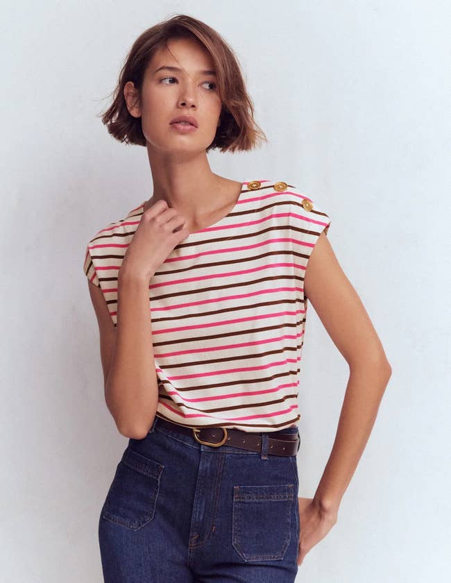 Promising review: "Love this top! Such nice quality fabric and buttons, also beautifully proportioned. Will order in more colorways. Note that the arm openings are on the small side, so consider sizing up." —Buzzybee