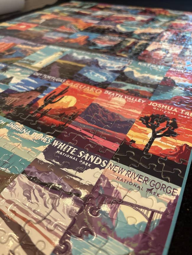 Promising review: "My family has traveled to many of these national parks, so I was super excited to work the puzzle; however, when I finished it, I KNEW I wanted to glue and frame it. I love working puzzles, but I had never framed one before. I put it in my sitting room, which also has a wall gallery of family pictures from our cross-country trips!" —heather smith