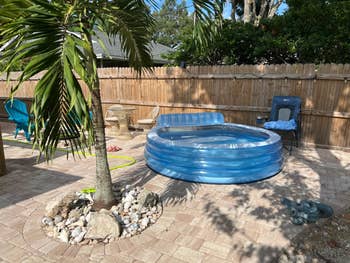 We hope you love our recommendations! While every product is independently chosen by our editors, BuzzFeed and our publishing partners may collect a share of sales or other compensation from the links on this page. You can read more about how our affiliate partnerships work in our Editorial Standards & Ethics Guide. All I need is a soft-serve margarita so I can feel like I'm at the beach down in Copacabana. It also has built-in benches and cup holders so you can lounge comfortably with your favorite drink close by! Promising review: "This pool has been a great summertime addition to beat the Texas heat! My daughter, husband, and I are enjoying it so much! It’s a pretty good size, easy to set up, and, so far, is holding up pretty well! I did purchase a couple of additional items to keep the water/ pool clean and covered. I was quite skeptical at first, as we had already purchased another pool this summer that didn’t last, but this pool was it! If you’re looking for something to relax in and cool off, go for it!" —Pineapple_Beauty94 Promising review: "My 2-year-old and 10-year-old kids and 32-year-old husband love it. Super easy to put together. Great for an easy cool-down in the back for those without a pool. Florida living here, so water is a must in summer. Has held up very well in terms of durability. Left it out for a few days, and it still worked great." —Deja T. Get it from Amazon for $27.95+ (available in four designs). This weatherproof fan has a fully sealed and permanently lubricated industrial motor to protect it against wetness. Promising review: "Great fan at a good price! I bought this fan for my backyard to help circulate the air on hot days and to help deter mosquitoes at night around the firepit. This fan worked perfectly. It has three speeds, the highest of which is super strong. The fan at high speed is a bit noisy, but nothing unexpected for a powerful fan. It is also 100% waterproof, which is a must. My only minor issues would be 1) it would be nice if the fan came with a cover for when it’s not used (I bought 20-inch tire storage covers to do the job), and 2) the fan is only adjustable up and down, not side to side — if they could make it oscillate, that would be great. Having said that, I would recommend this fan for sure and would not hesitate to buy it again." —Bigdad Get it from Amazon for $119.98+ (available in two sizes). You get about 18 hours of playtime on a full charge, and if you're just using the torchlight, it’ll last a whole week! You can recharge them with a USB cable in 4-5 hours. Plus, they can connect to your device in just three seconds, even from 100 feet away. Promising review: "I needed waterproof speakers that could sit outside, and I’m so glad I found these. They give off a nice ambiance when sitting out back, and the sound is loud but not too loud to disturb neighbors. Bluetooth connection is easy. So far so good, and I’m satisfied with the purchase." —applefir Get a set of two from Amazon for $74.99. This net measures 10 x 10 feet. But if you need to cover a larger space, you can link up to three nets together! With the timer function, the lights stay on for six hours and automatically turn off for 18 hours. Promising reviews: "These lights look beautiful in our gazebo. It feels like you are looking up at the stars. I definitely recommend these!!!" —Martha Guerra "Perfect upgrade for your deck. Transforms the atmosphere into something enjoyable. The result is a constellation of warm stars, evenly spaced, that do not distract. Instead, they direct your attention to your beautiful deck and your guests and so on." —sharpShopper654 Get it from Amazon for $23.99+ (available in three sizes). You can use this fast-drying paint on almost any surface, including wood, metal, plastic, and masonry. Promising review: "I recently tried this spray paint, and I must say, I was thoroughly impressed. Not only did the paint cover flawlessly on a variety of surfaces, but the color options were absolutely stunning. The dry time was quick, and the finish was smooth and professional-looking. I especially appreciated the paint's durability — it held up well against everyday wear and tear. I highly recommend it to anyone looking for a high-quality, versatile paint option. You won't be disappointed!" —BestBuys Get it from Amazon for $9.88+ (available in a variety of metallic colors). Promising review: "I bought this screen to watch movies outside on my deck. It was easy to assemble, so easy I didn’t even need to look at the directions. I assembled it by myself. It came with bags to fill with sand to place on the base of each leg, but I ended up using large bags of rice I had instead and it worked fine. It also came with strings to secure each end in case of wind, which I did and it was a breezy day and it held up great." —Sfat Get it from Amazon for $69.99+ (available in two versions). Plus, when you flip back over, there's a pillow that covers the hole to keep your head comfortable. Promising review: "This is typically more than I would have spent on a lounge chair, but after seeing it on TikTok, I had to buy one!! The arm and face hole make tanning the backside so easy and comfortable!" —Keely Shay Get it from Amazon for $69.99+ (available in 12 colors/patterns). Promising review: "We moved from New Hampshire to Florida a year and a half ago. I knew Florida was hot, but…I bought this so I could sit out on the lanai on the hottest of days (95+), and it did the trick! It provides a nice light mist that you can move in any direction. It’s a nice weight, so it doesn’t move. It obviously cannot replace a swimming pool, but it will keep you cool. My dog likes the light mist and has even fallen asleep while being sprayed! An easy alternative until we get a pool! Buy it, you won’t regret it!" —Patricia Harty Promising review: "Definitely a good buy! I love the portability and the storage shelf! The easy-on/off covering provid