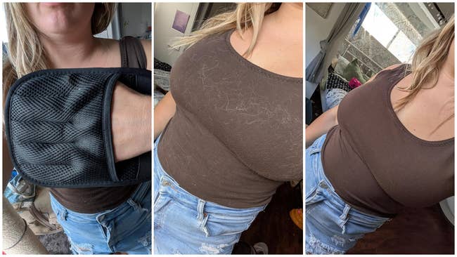 The fit is comfortable, the material feels sturdy, and it's very easy to clean — just peel the hair off or rinse it. I also like that it's reusable, so I'm saving money on sticky rollers. If you have pets that shed, this is a must-have. I honestly wish I had bought it sooner." —XIMENA C.