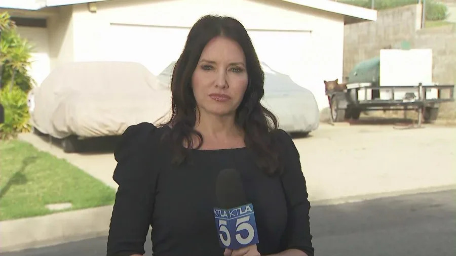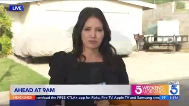 KTLA reporter Erin Myers was teasing her upcoming story at the top of the 9 a.m. broadcast when the animal appeared behind her in the driveway of a home on Oakglade Drive.