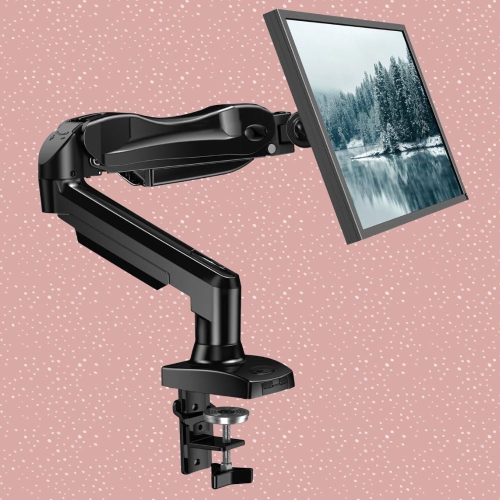 We selected this adjustable monitor arm for its 4.6 out of 5-star rating on Amazon, across 15,600+ reviews. It promises great adaptability across a variety of monitor types and stability. Once your monitor is attached using the quick screw installation, your screen can tilt, swivel and rotate 360 degrees.