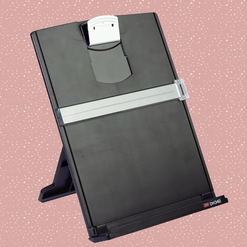 This is a popular choice by 3M, which features a frame-style design that keeps documents secure and upright using a height-adjustable clip and a non-slip base. It can hold up to 150 standard sheets of paper at a time and can fold flat when not in use.