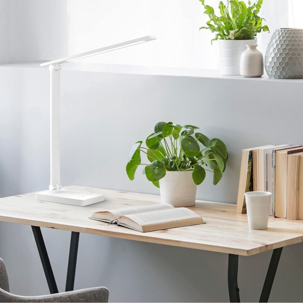 "A freestanding task light can also be helpful for shining light on paper documents without shining light on the computer screen," Hedge said. We took his suggestion and selected this sleek and dimmable LED desk lamp that features five light modes and five brightness levels, including soft, warm lighting to reduce eye fatigue. This space-conscious light is also height-adjustable with a tilting arm.