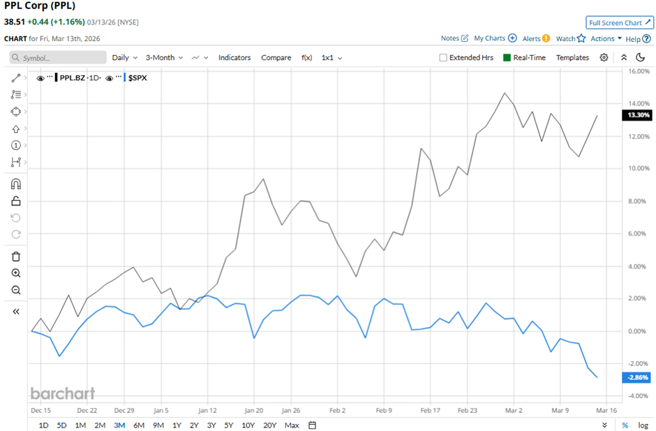 PPL stock is up nearly 10% on a YTD basis, outpacing SPX's 3.1% decline. However, shares of PPL have returned 12.8% over the past 52 weeks, lagging behind the 20.1% return of the SPX over the same time frame.