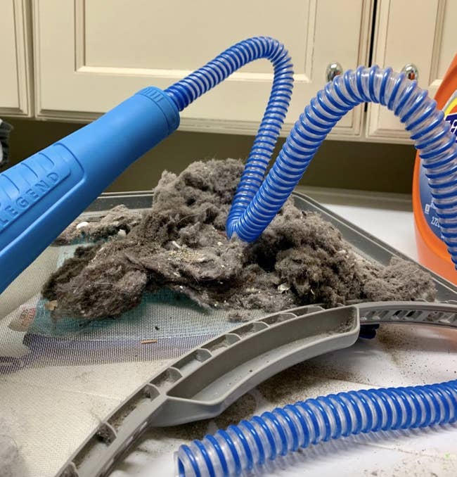Promising review: "I was somewhat skeptical about how this hose attachment would work, but let me tell you, it is the top. It easily popped onto my vacuum hose. Because it is so flexible, it really slid waaaaaay down in the vent of my LG dryer, and I was horrified and delighted by how much lint it pulled out. Then I got in there with the terrific skinny brush and loosened up some more crud, and hosed that out too. After that, the vent filter slipped into place like brand new — no more goofy sticking up to snag innocent laundry. All of this drama took place in about three minutes, so it is also super efficient in terms of time. This is a great product that is easy to use, helps keep your household safe, and prevents a lot of aggravation. I only regret that I did not know about it back when I bought the dryer." —SpiralGalaxies