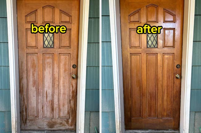 Promising review: "This stuff is absolutely AMAZING. My wife and I were getting tired of looking at our worn-out cabinets and wood paneling and were very close to paying a professional thousands of dollars to refinish it all, but then we came across this product. Our paneling and cabinets were looking rough. This stuff was like a Magic Eraser for water spots, scratches, scuffs, and any other blemish. We simply wiped the product on with a paper towel and let it sit for 20 minutes before wiping it off with a clean towel. Everything looks brand new. I'm buying a couple more so we can finish our cabinets and wood paneling. We're so glad we found this product." —Kris