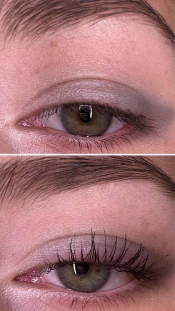 Fellow BuzzFeed Shopping writer, Emma Lord, *loves* it and says: "I am not a new human to the tubing mascara game, and in fact readily spent $26 on the famous OG blend from Blinc every time it needed replacing. I didn't even love it for the length half as much as the fact that tubing mascara like this genuinely never smudges, but can I just say — regardless of price, the E.l.f. tubing mascara formula blows all the others I've tried out of the water. It gives me way more length and volume than other brands, slides on so much more easily, stays put ALL day, and never, ever smudges. My favorite part, though, is how gently and easily it comes off with soap and water. In the past, other mascara removers have felt rough on my lashes, but this comes off so fast that I'm like ??? was I even wearing mascara a minute ago?? Anyway, I hesitate even writing this review because I want to gatekeep the hell out of this before it sells out, but the world needed to know. I'm a big fan of the brown shade (which is what I'm wearing above!), but it also comes in black and soft black."