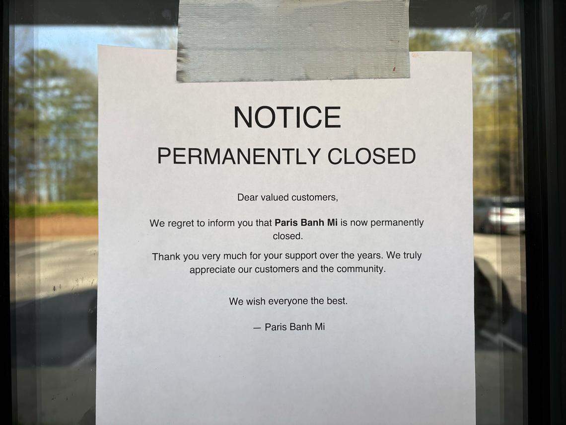 A restaurant specializing in Vietnamese and French foods has closed one of its Triangle locations. Paris Banh Mi abruptly closed in Cary after about two years in business. A sign on the window near the front door states that the restaurant has closed, without providing a reason why. “We regret to inform you that Paris Banh Mi is now permanently closed,” the restaurant wrote on the sign. “Thank you very much for your support over the years. We truly appreciate our customers and the community. We wish everyone the best.” The News & Observer’s attempts to call the restaurant did not go through. The location’s social media pages have been deleted. Located at 712 SE Maynard Road, the restaurant was one of two Paris Banh Mi restaurants in the Triangle. The building previously housed a Five Guys. With the Cary restaurant closed, only the Chapel Hill location remains. That location opened in February in Meadowmont Village. Elsewhere in North Carolina, Paris Banh Mi has locations in Greensboro and Jacksonville. The restaurant is known for its Vietnamese street food including banh mi, along with baked goods and boba tea. Several new restaurants have announced plans to open in Cary soon. Dave’s Hot Chicken and Sweetgreen are expected to open at the Alston Town Center development on the west side of town. Sweetgreen has not shared an opening date, but the spicy chicken chain is expected to open in the third quarter of this year. Lloyd’s Full Service will open in a former service station in downtown Cary at the corner of Chatham and Academy streets this summer. After Triangle coffee shop closes, another takes its place. What to know Popular grocery chain plans a new store in Cary. Here’s what to know